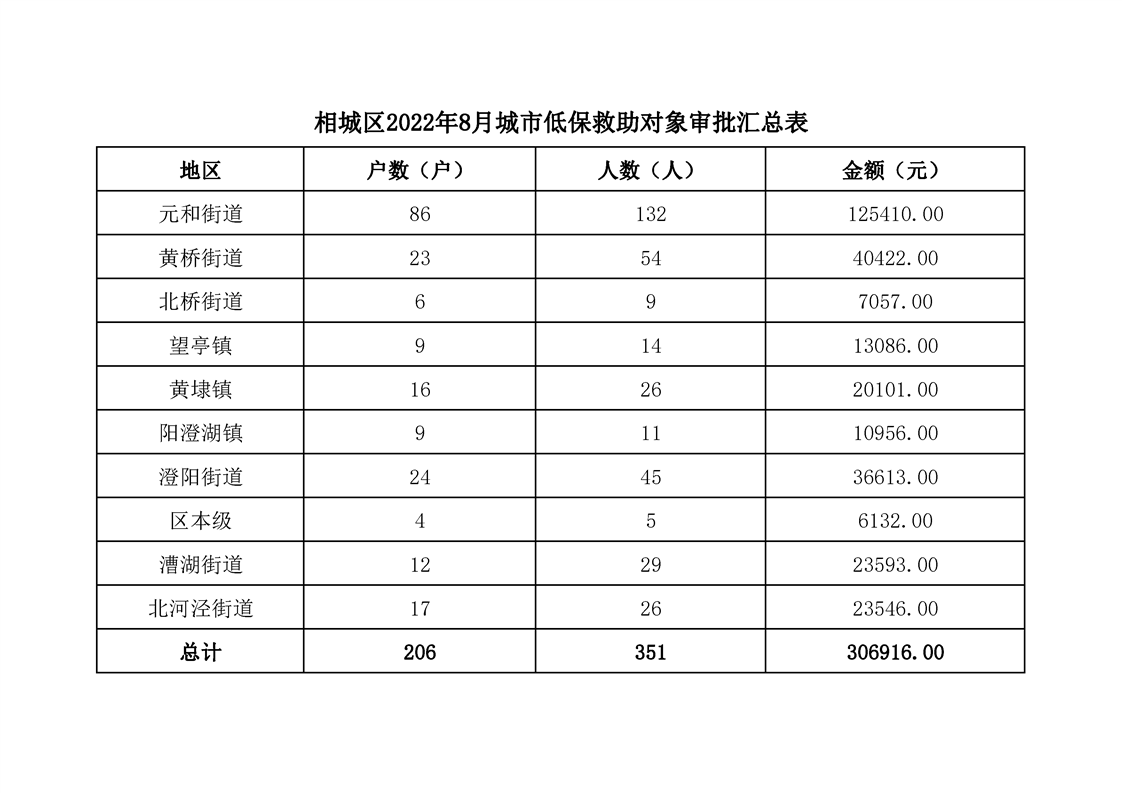 相城區(qū)2022年8月城市低保救助對象審批匯總表
