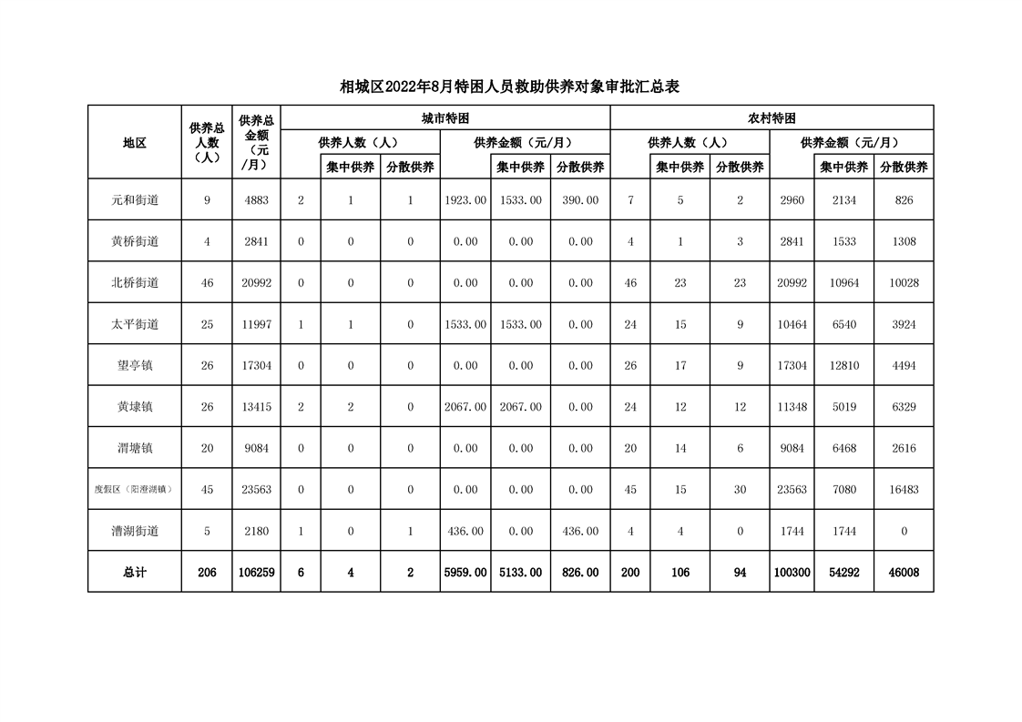 相城區(qū)2022年8月特困人員救助供養(yǎng)對象審批匯總表