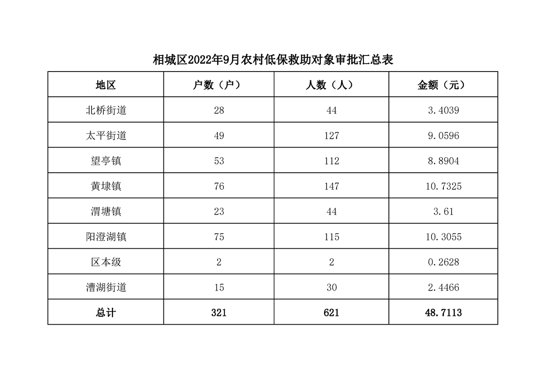 相城區(qū)2022年9月農(nóng)村低保救助對(duì)象審批匯總表