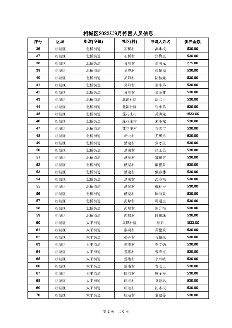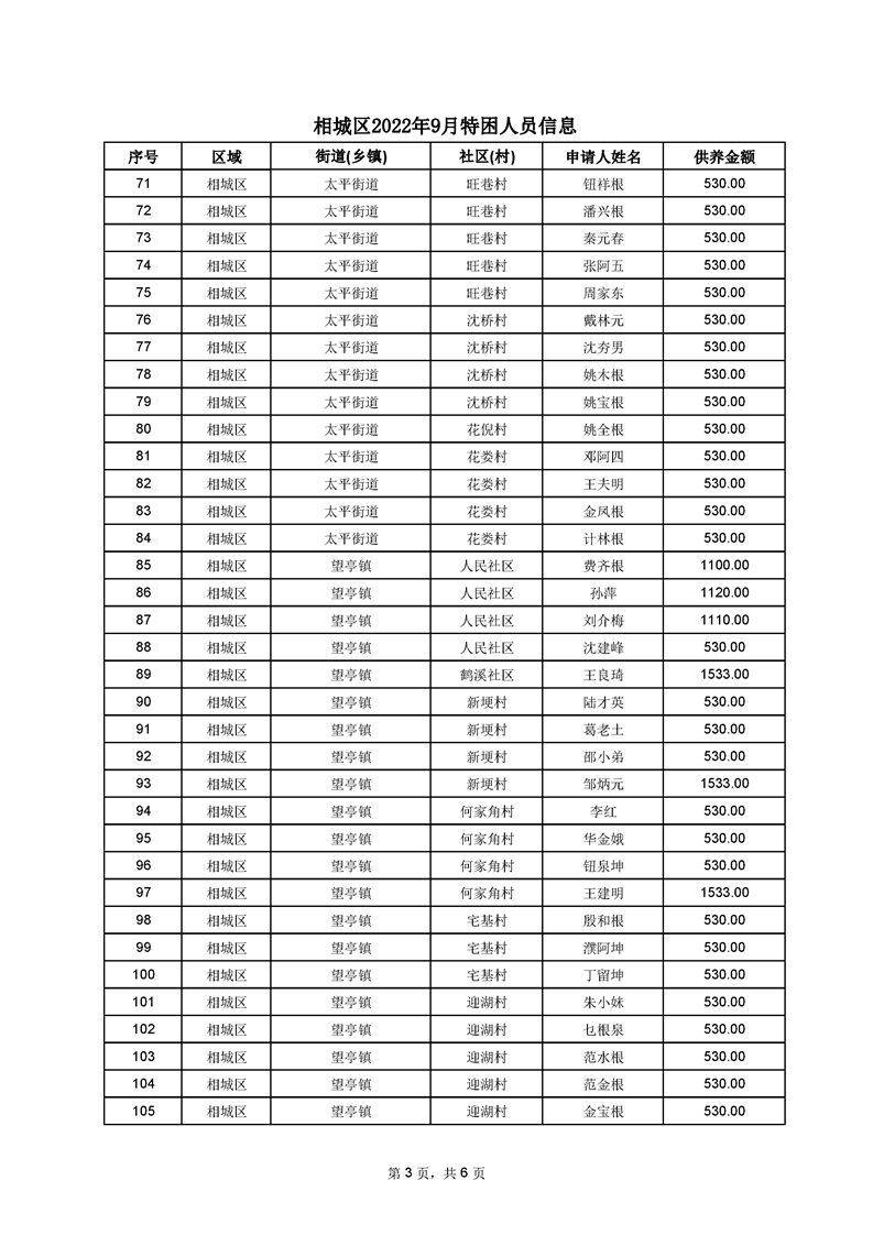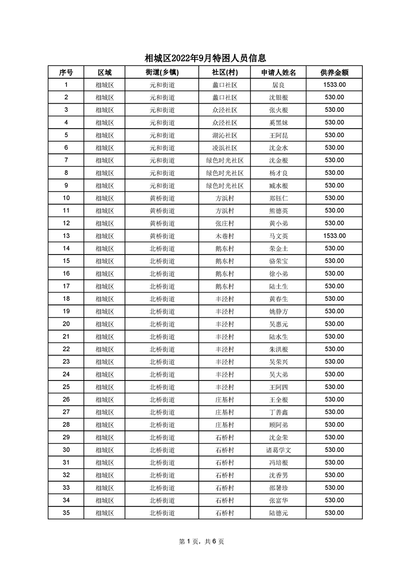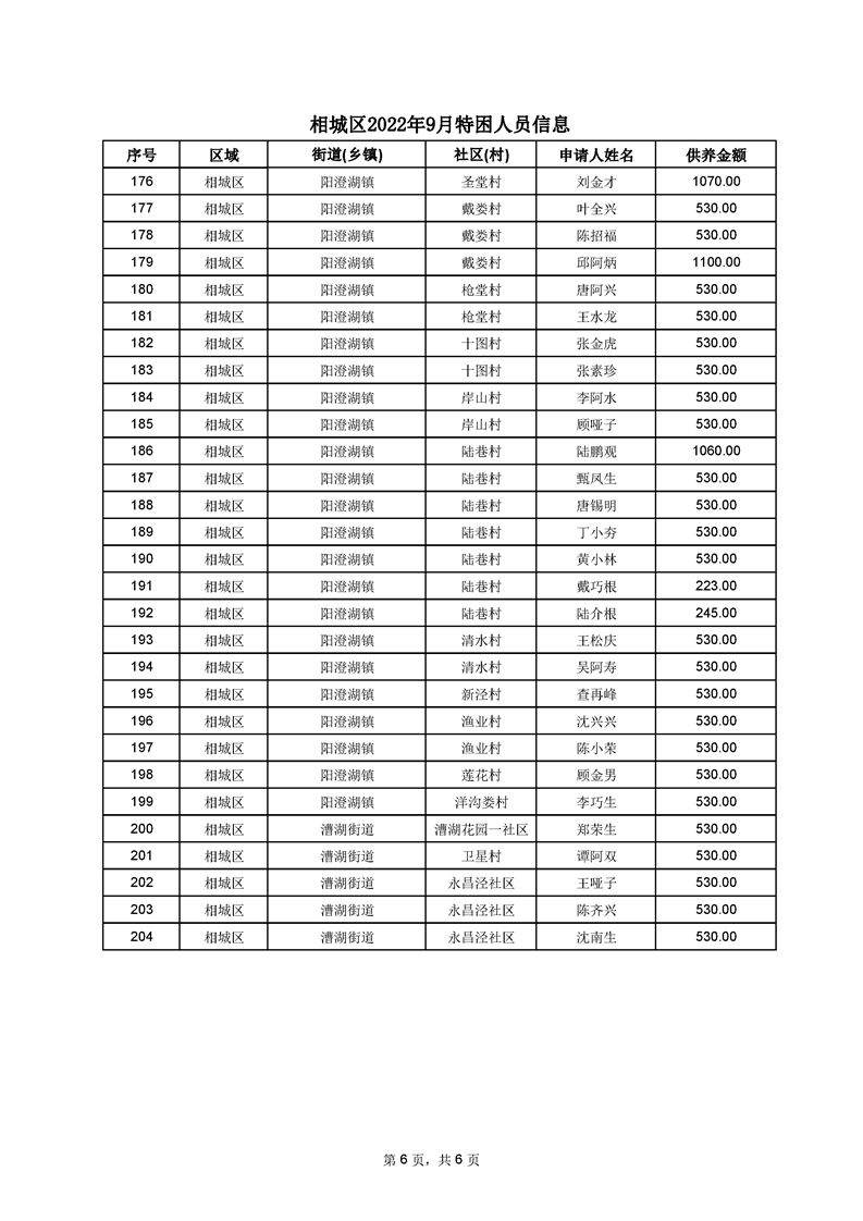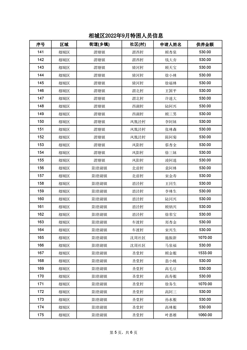 相城區(qū)2022年9月特困人員信息