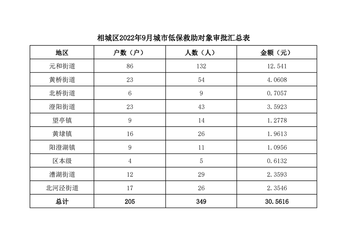 相城區(qū)2022年9月城市低保救助對(duì)象審批匯總表