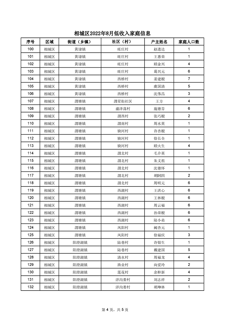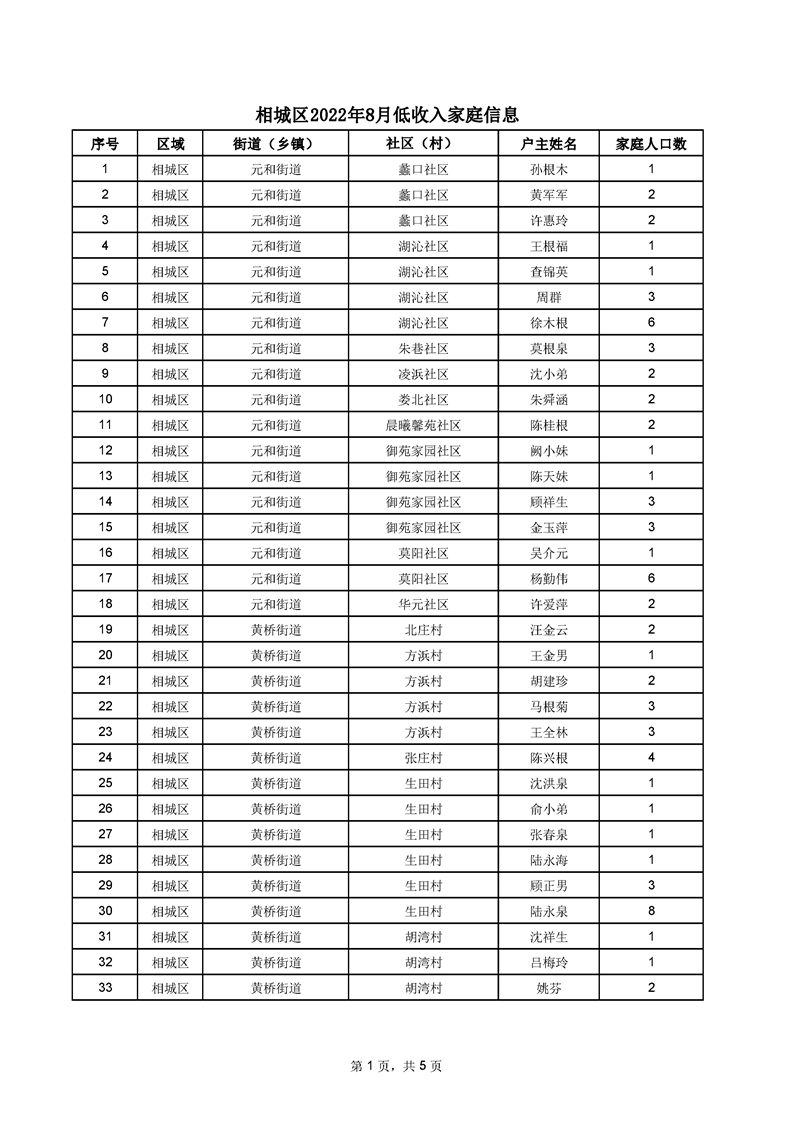 相城區(qū)2022年8月低收入家庭信息