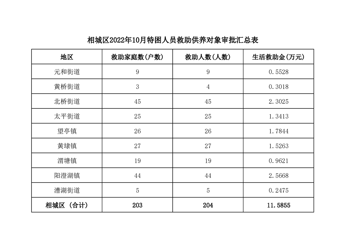 相城區(qū)2022年10月特困人員救助供養(yǎng)對象審批匯總表