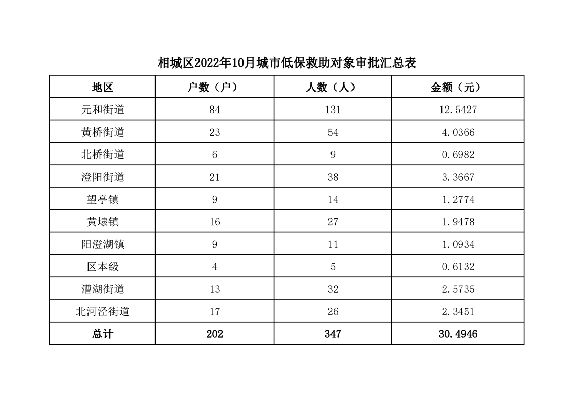 相城區(qū)2022年10月城市低保救助對象審批匯總表