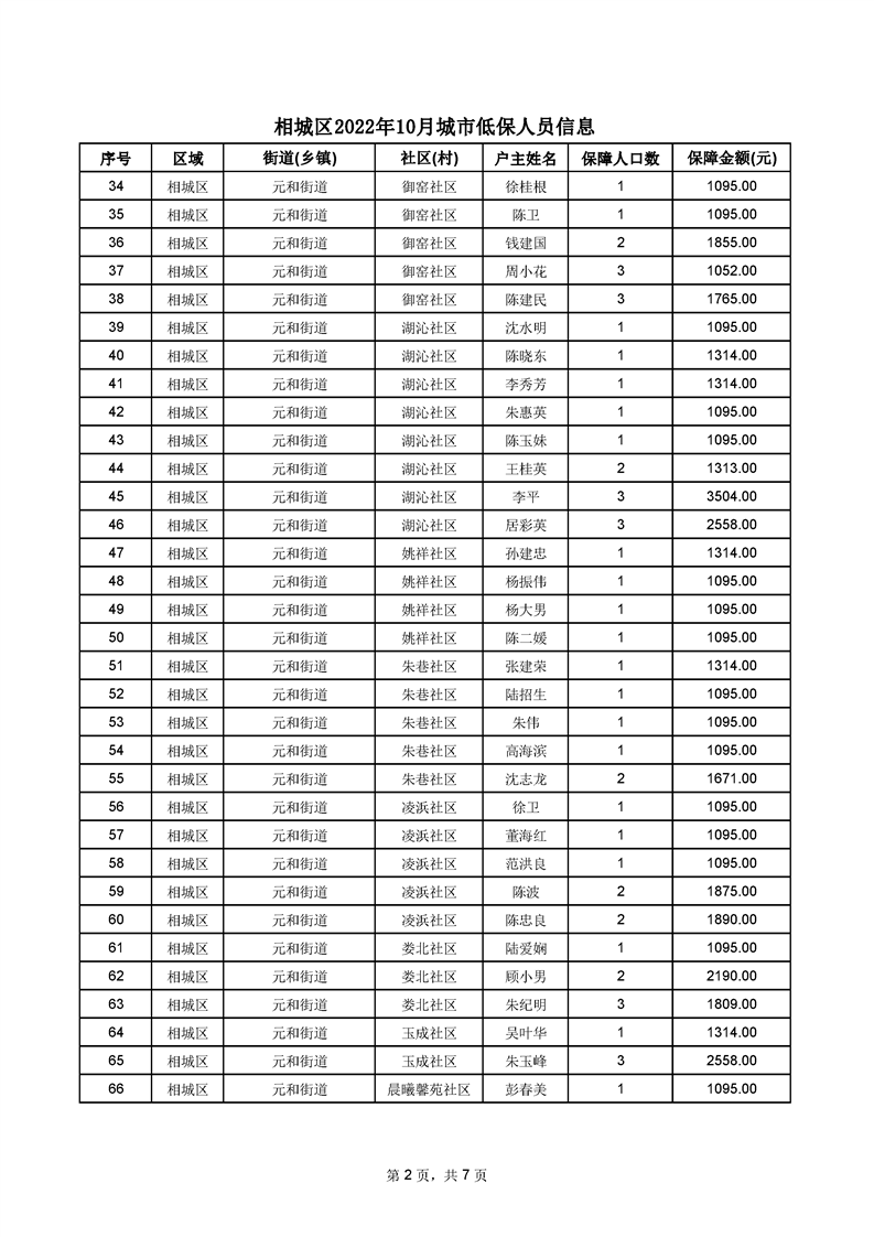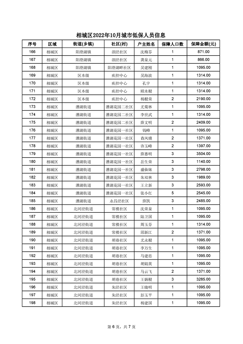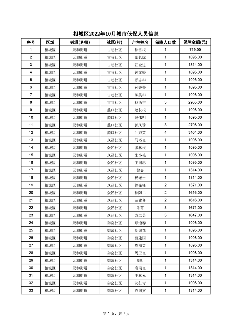 相城區(qū)2022年10月城市低保人員信息