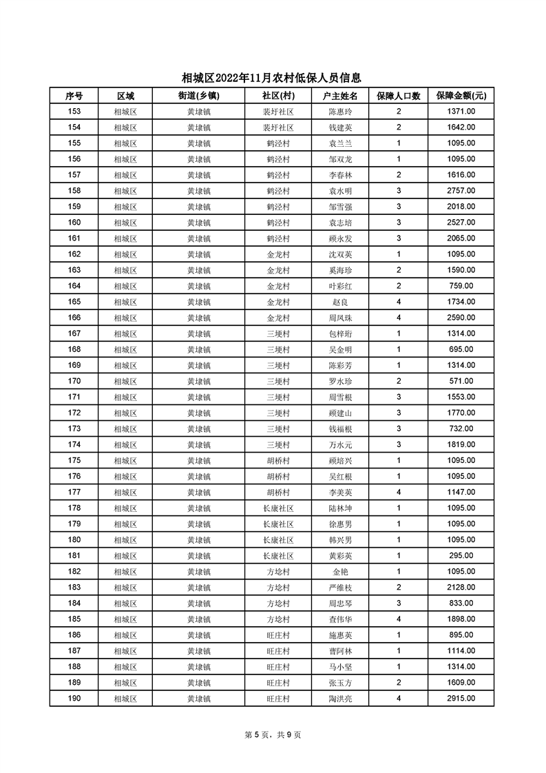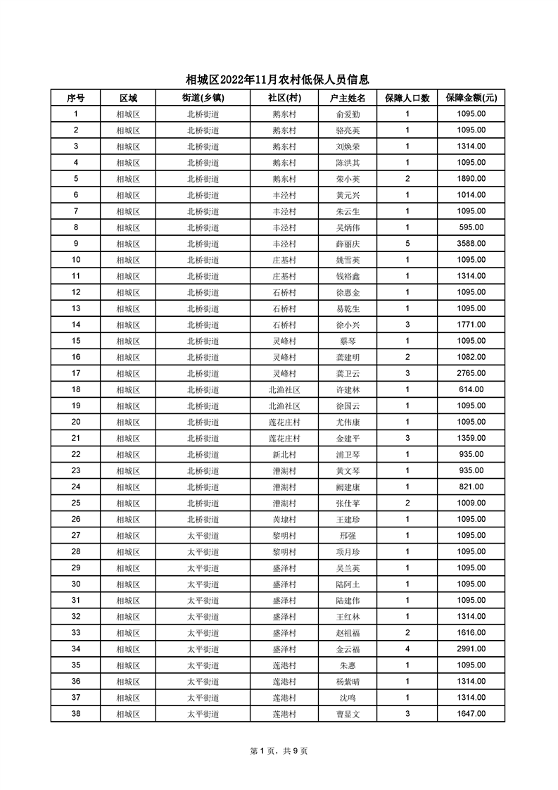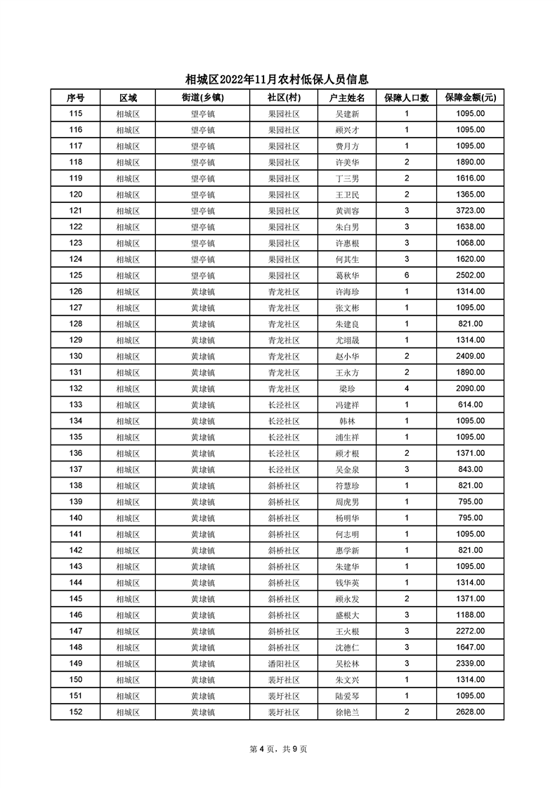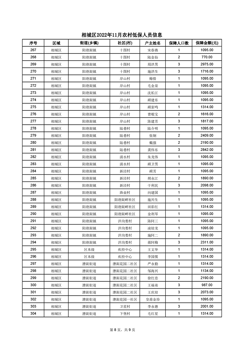 相城區(qū)2022年11月農(nóng)村低保人員信息