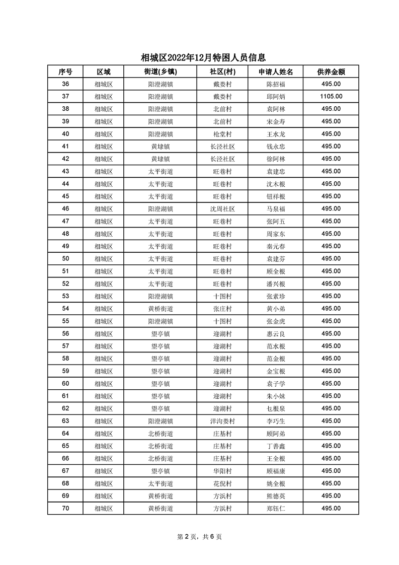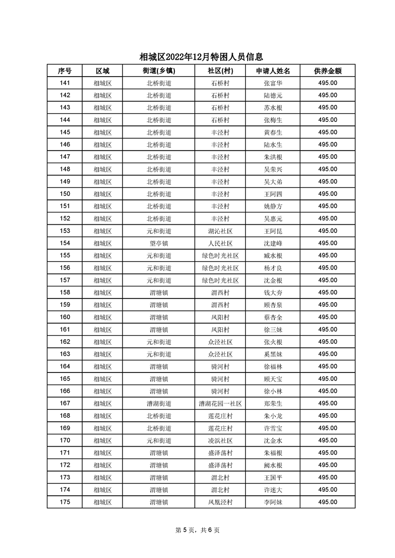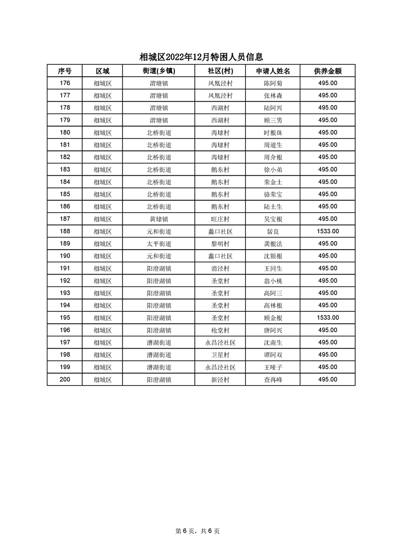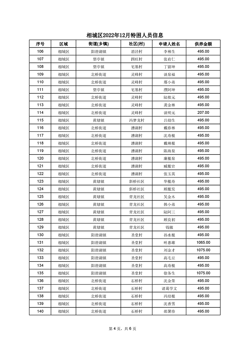 相城區(qū)2022年12月特困人員信息