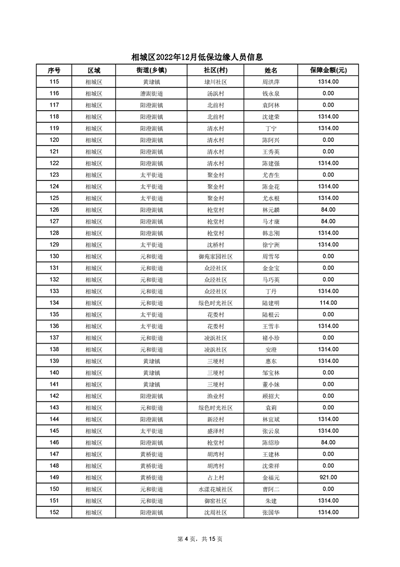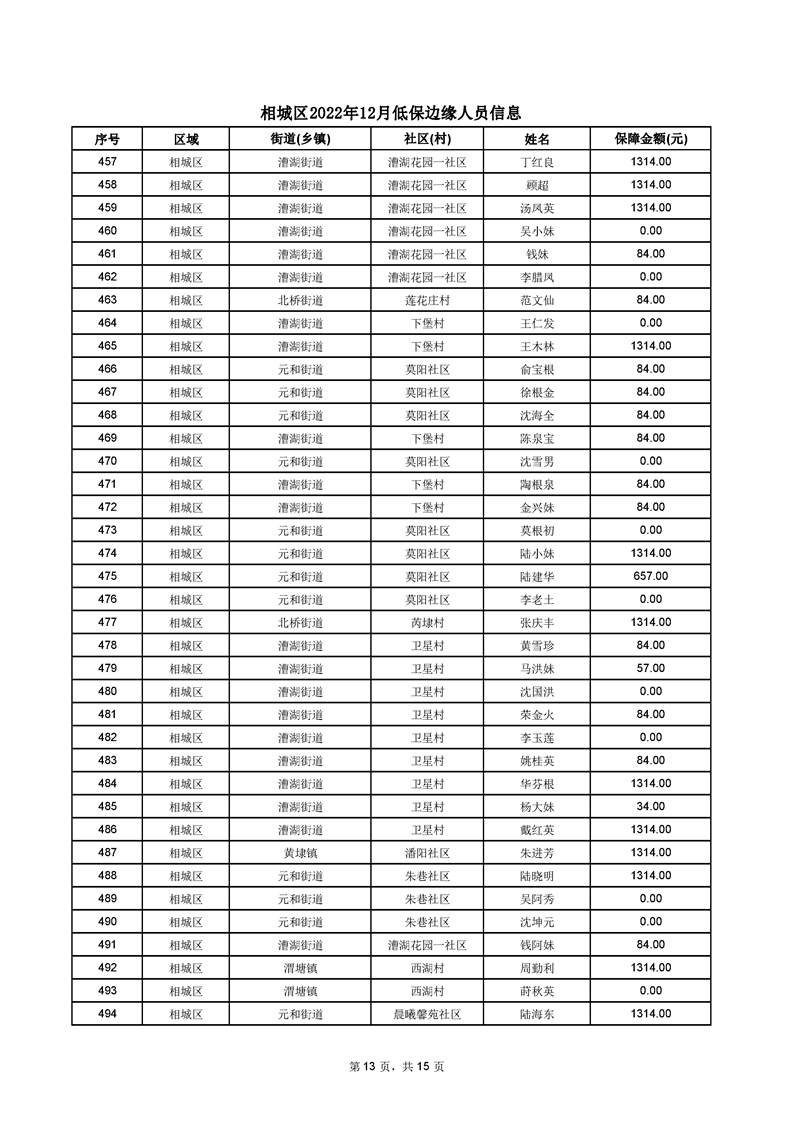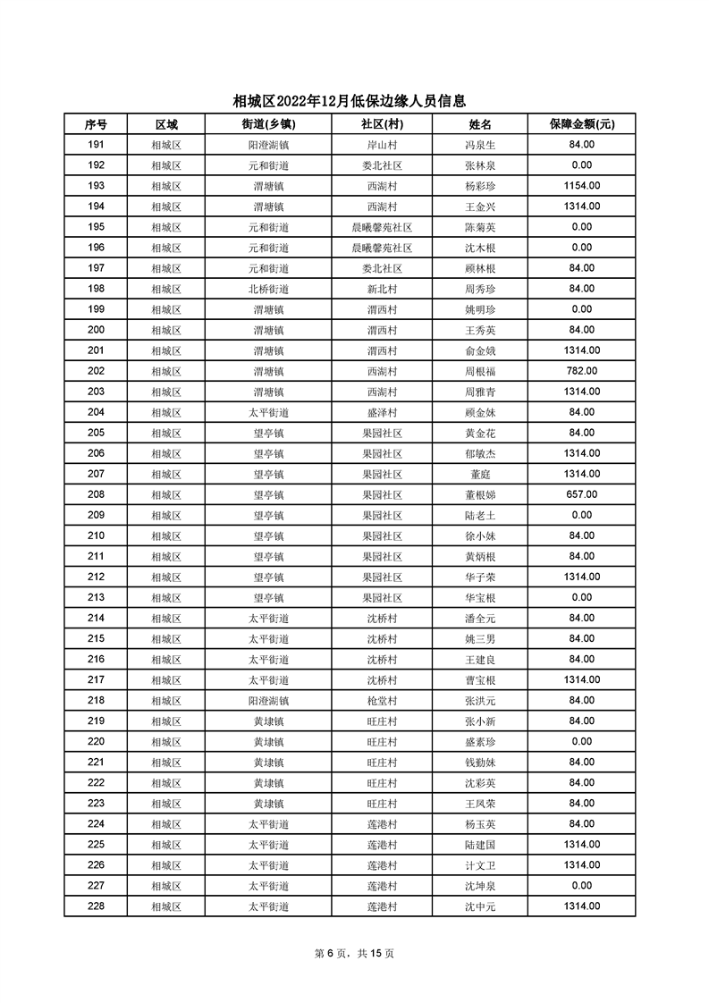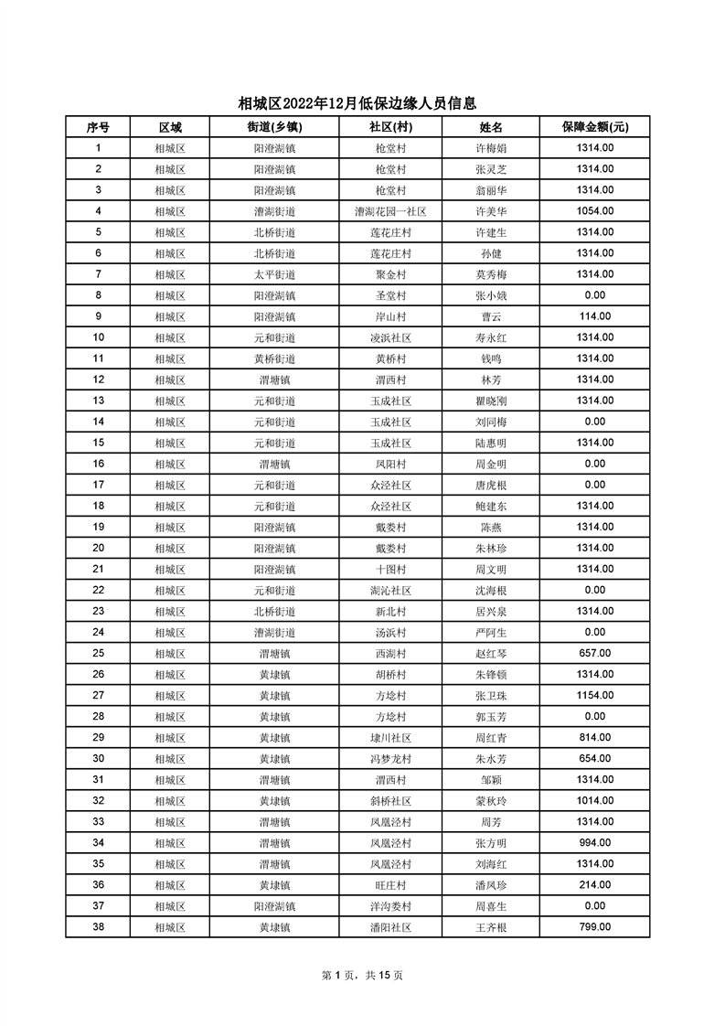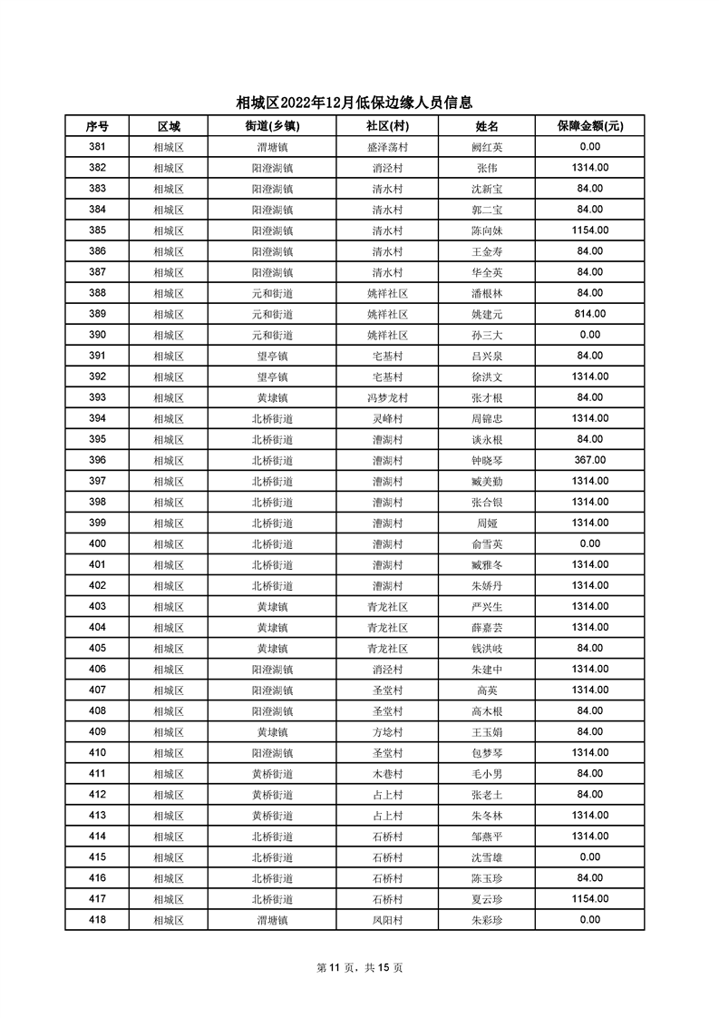 相城區(qū)2022年12月低保邊緣人員信息