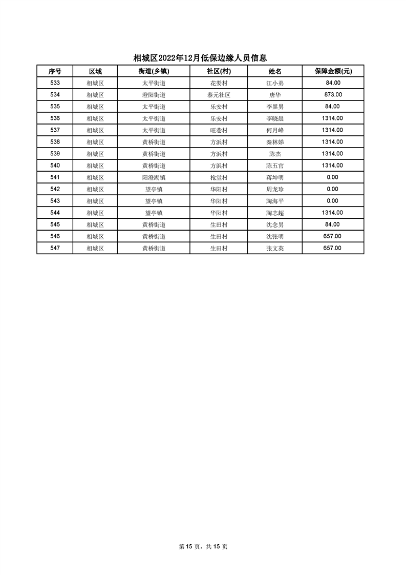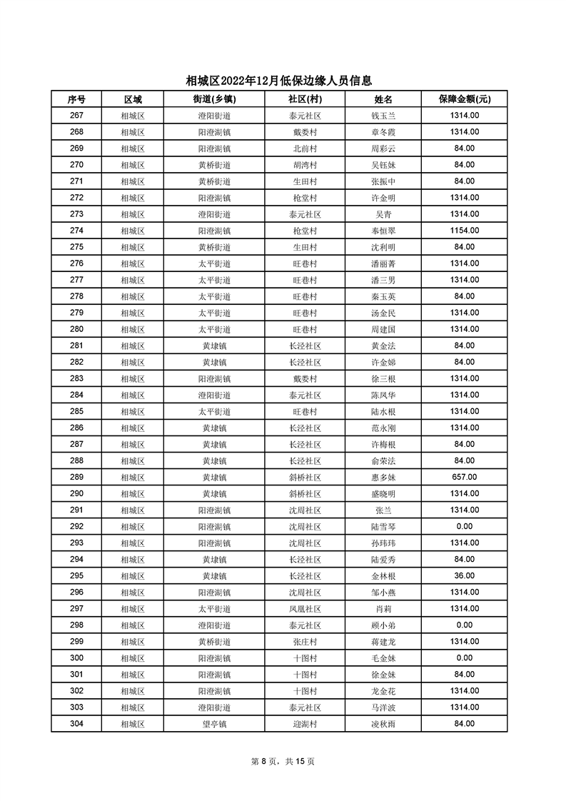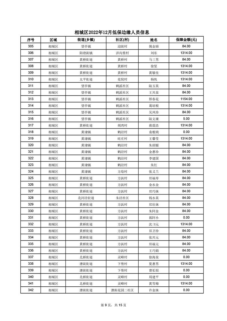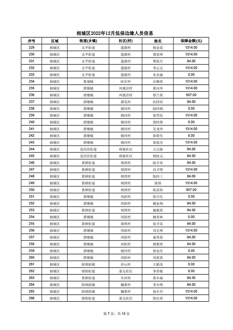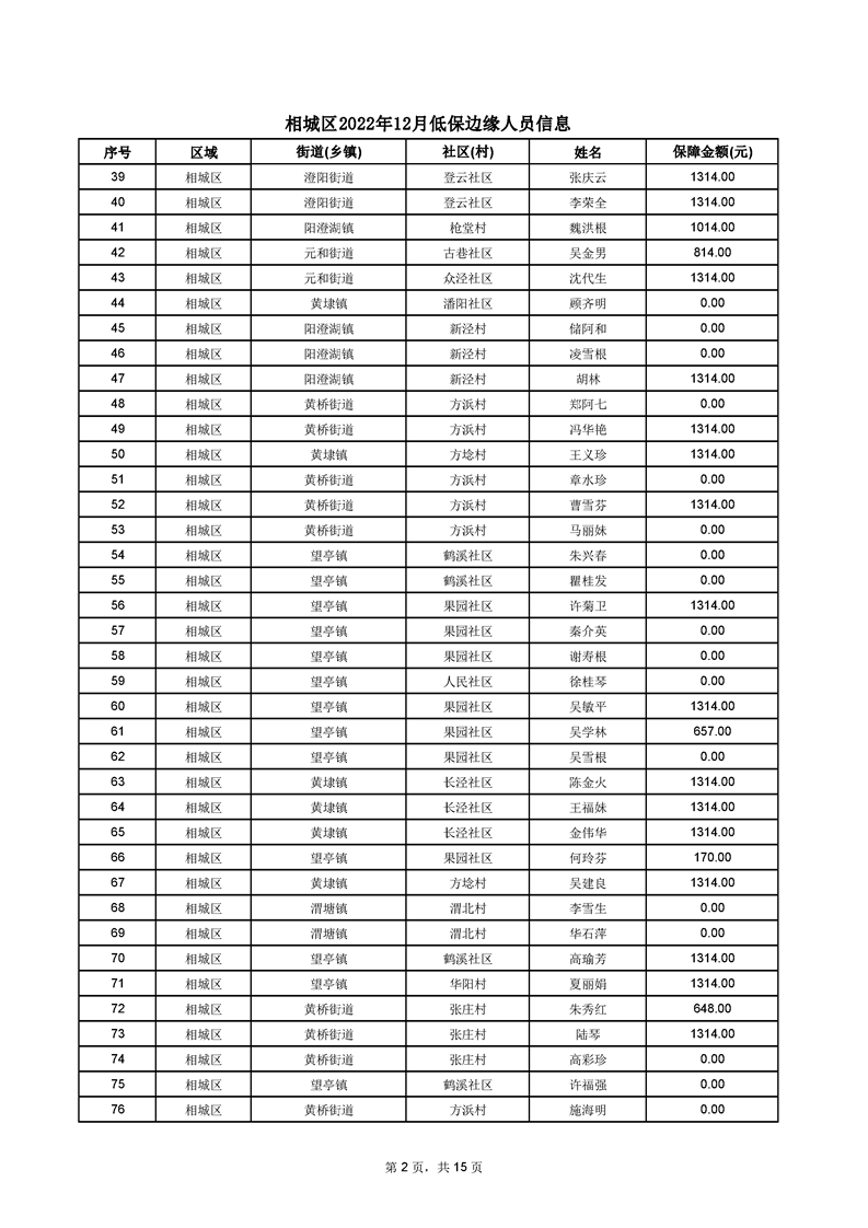 相城區(qū)2022年12月低保邊緣人員信息