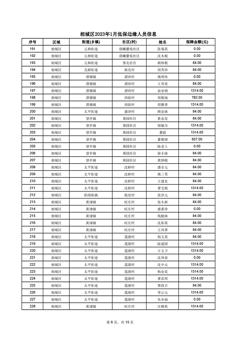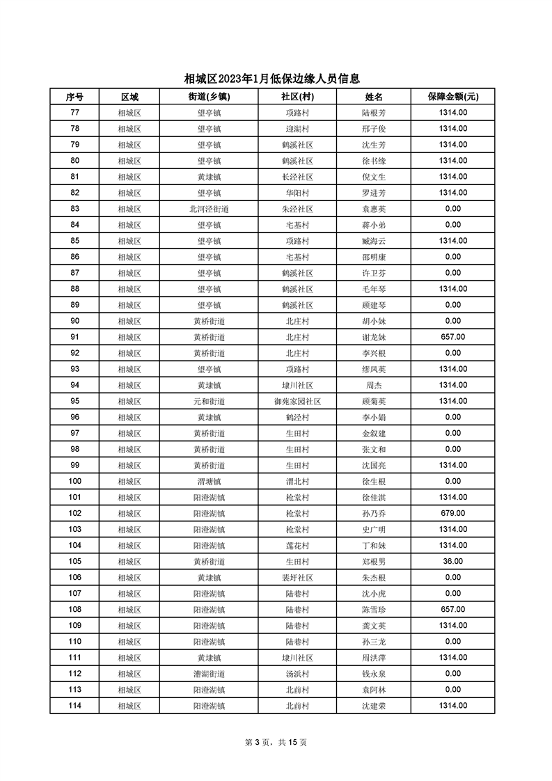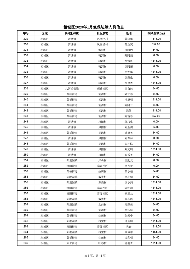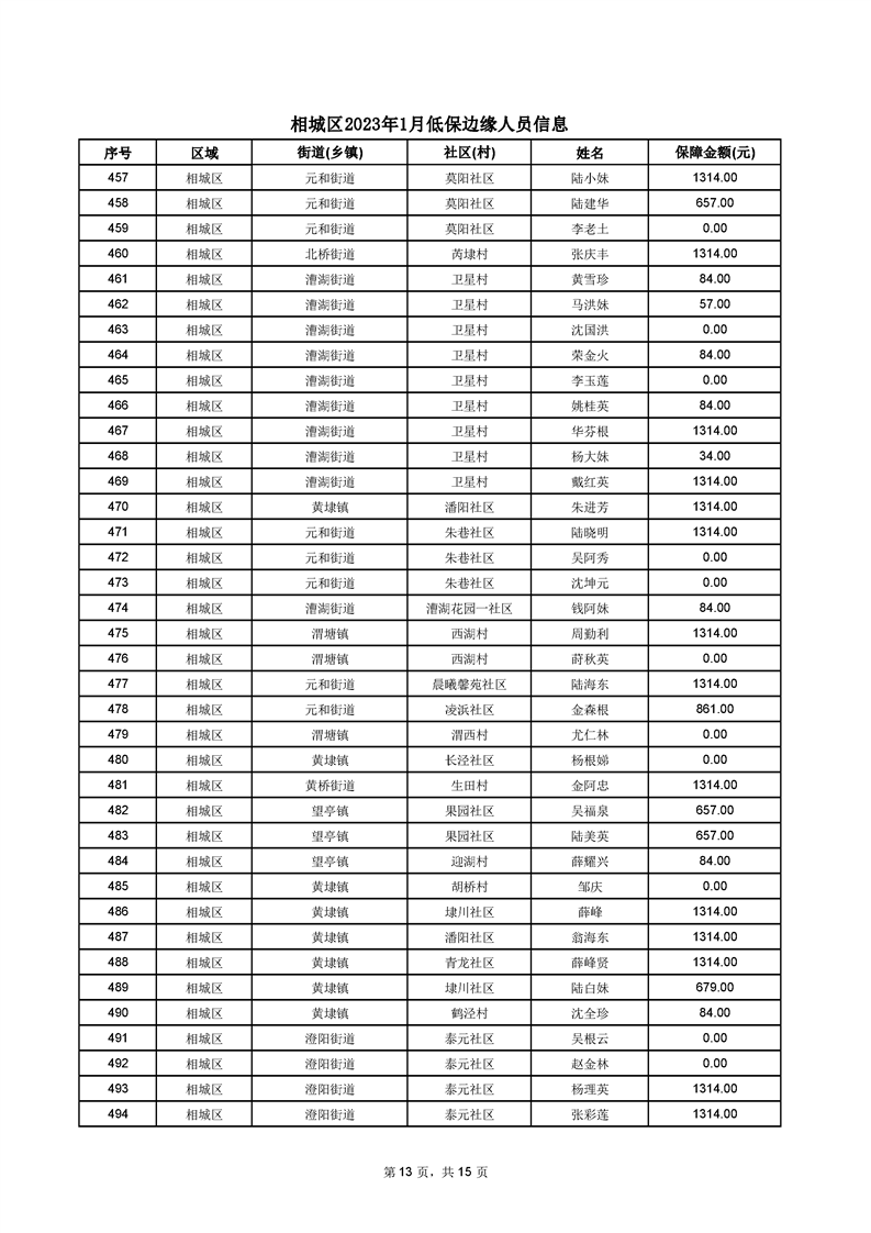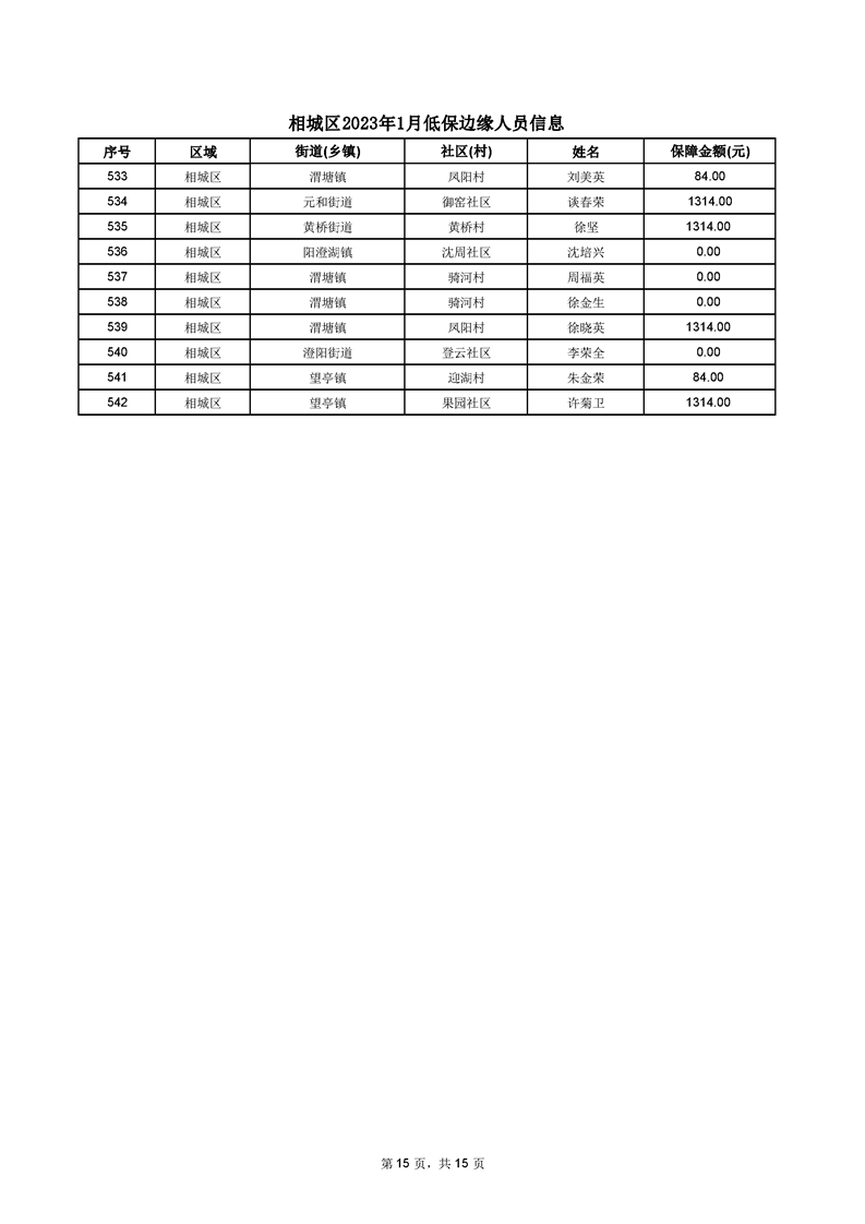 相城區(qū)2023年1月低保邊緣人員信息