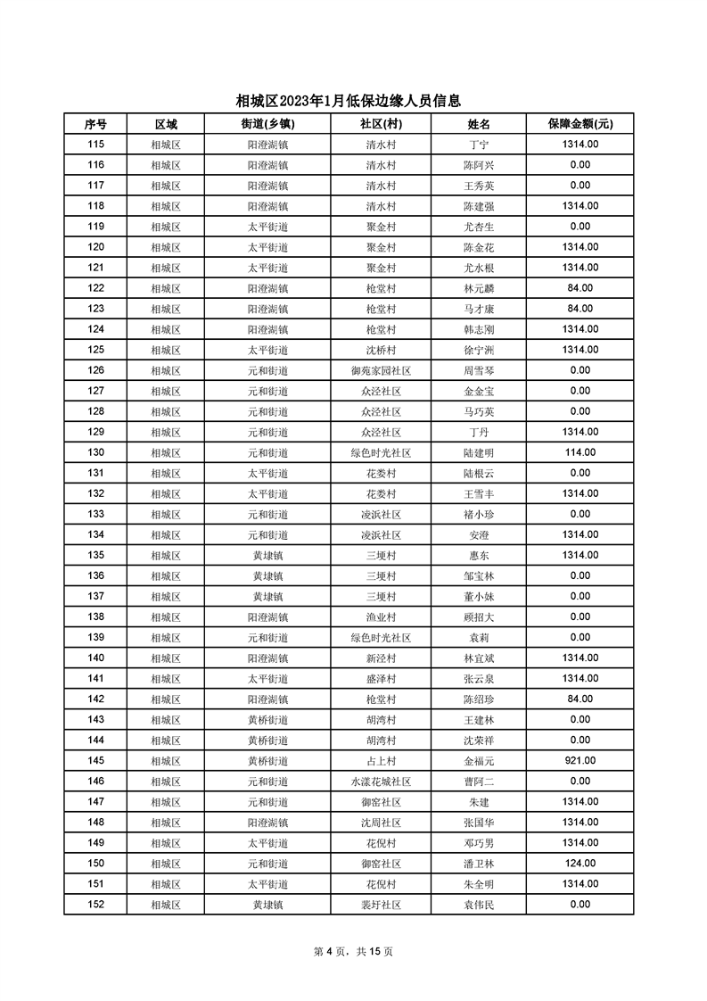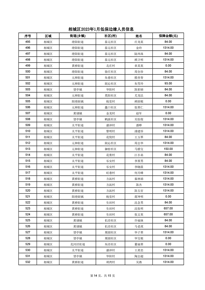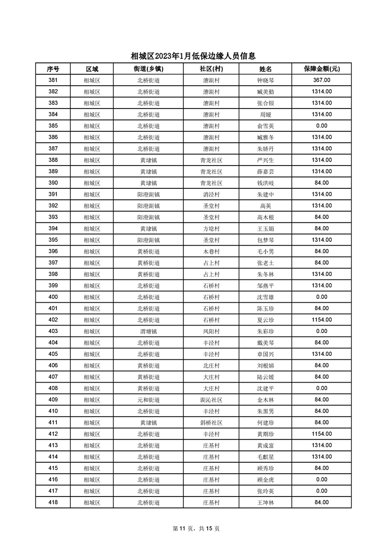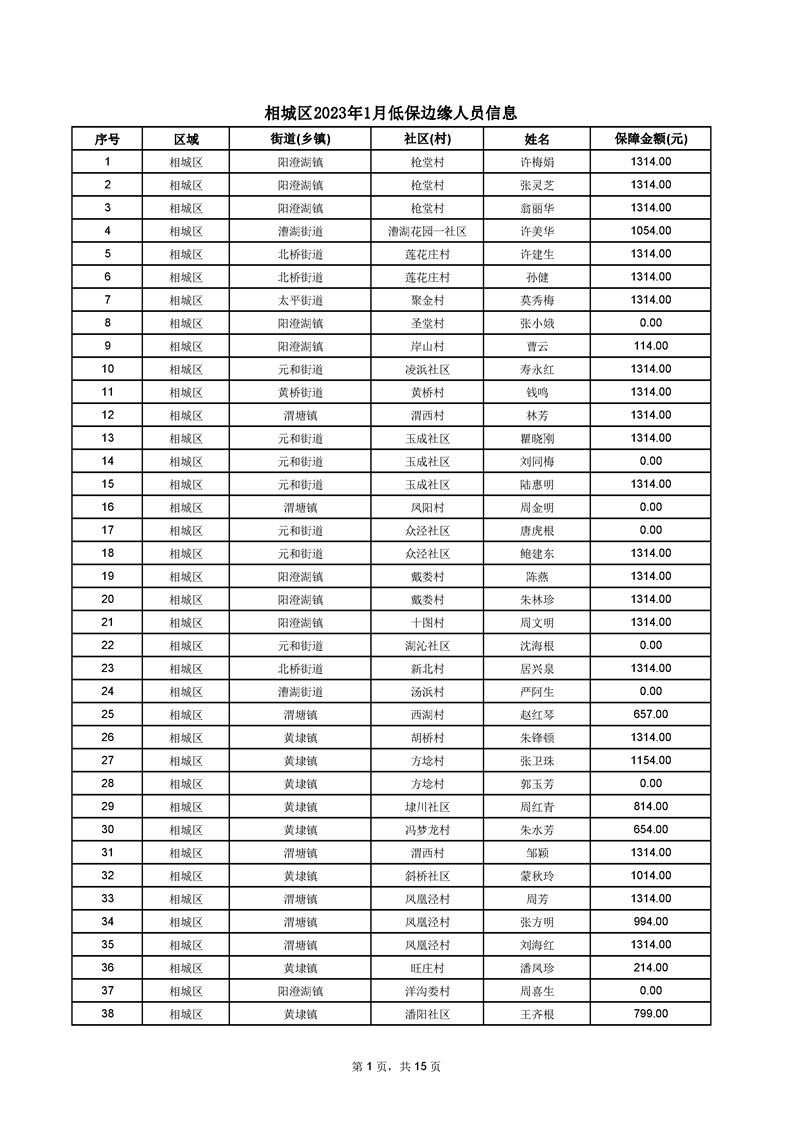 相城區(qū)2023年1月低保邊緣人員信息