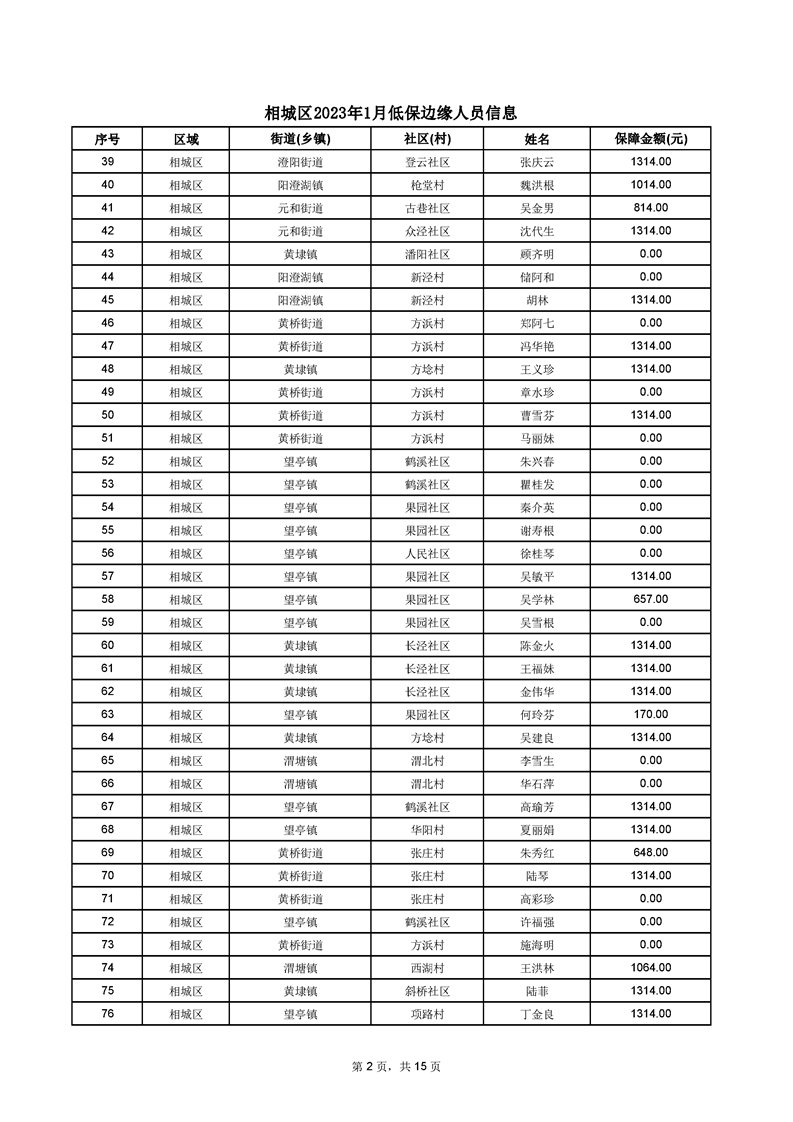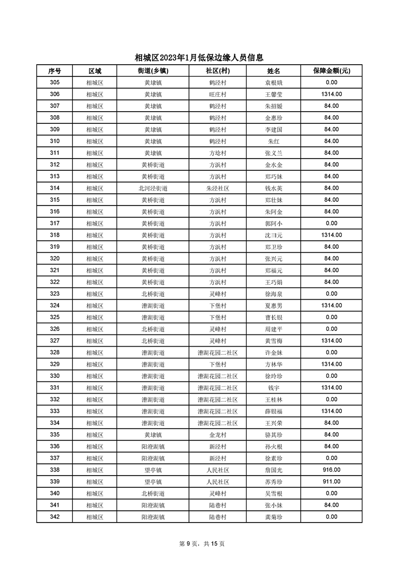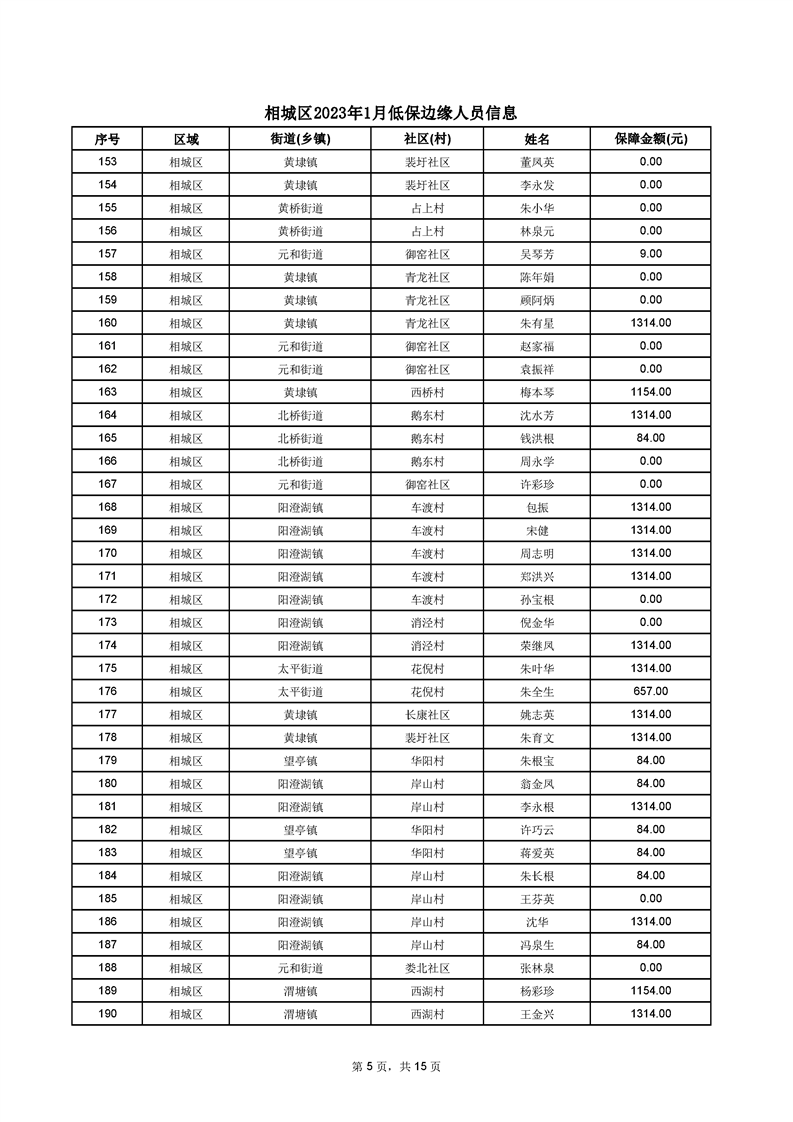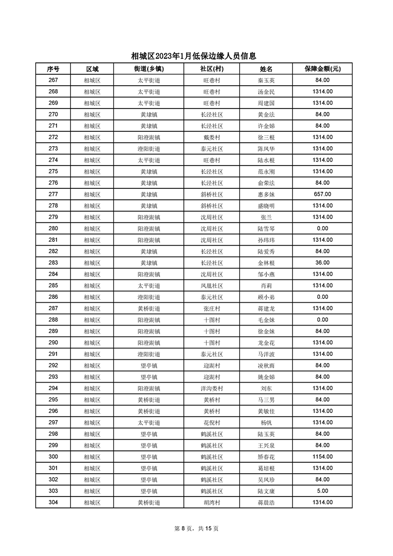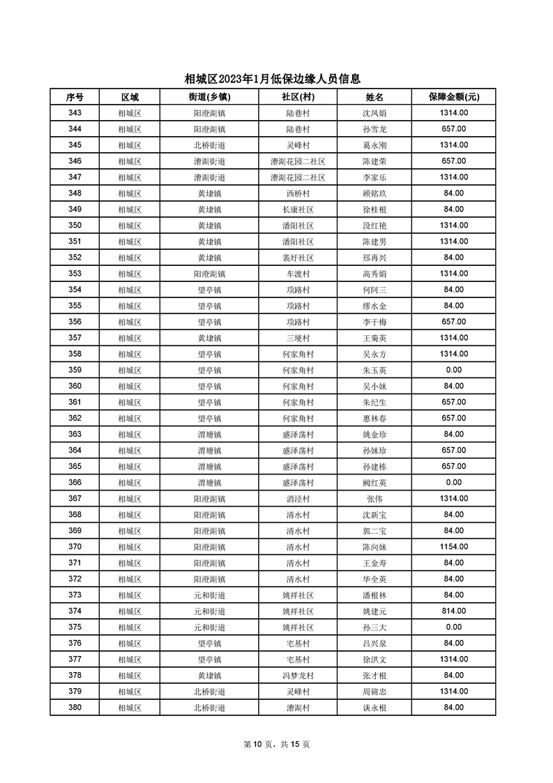 相城區(qū)2023年1月低保邊緣人員信息