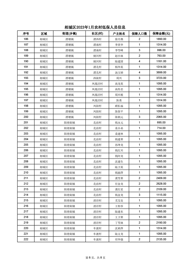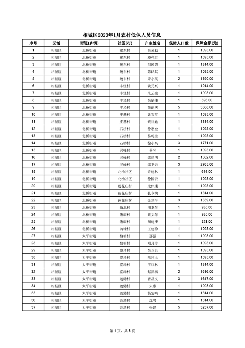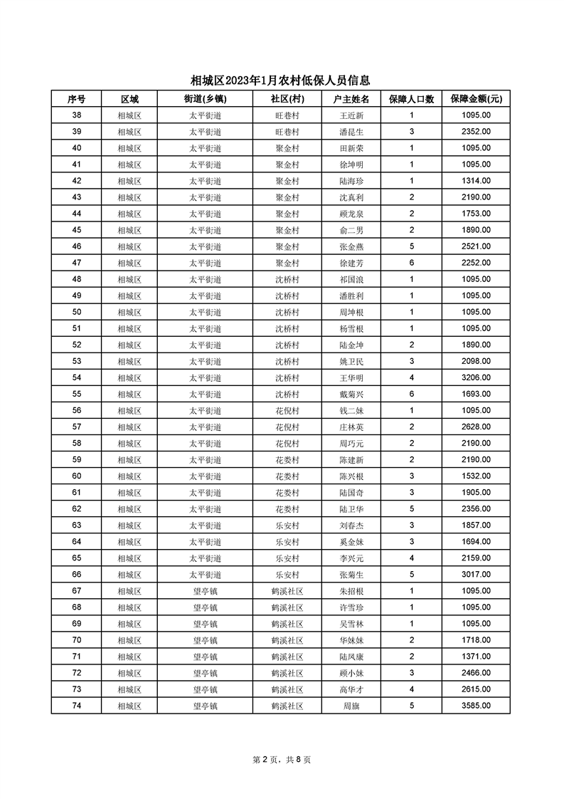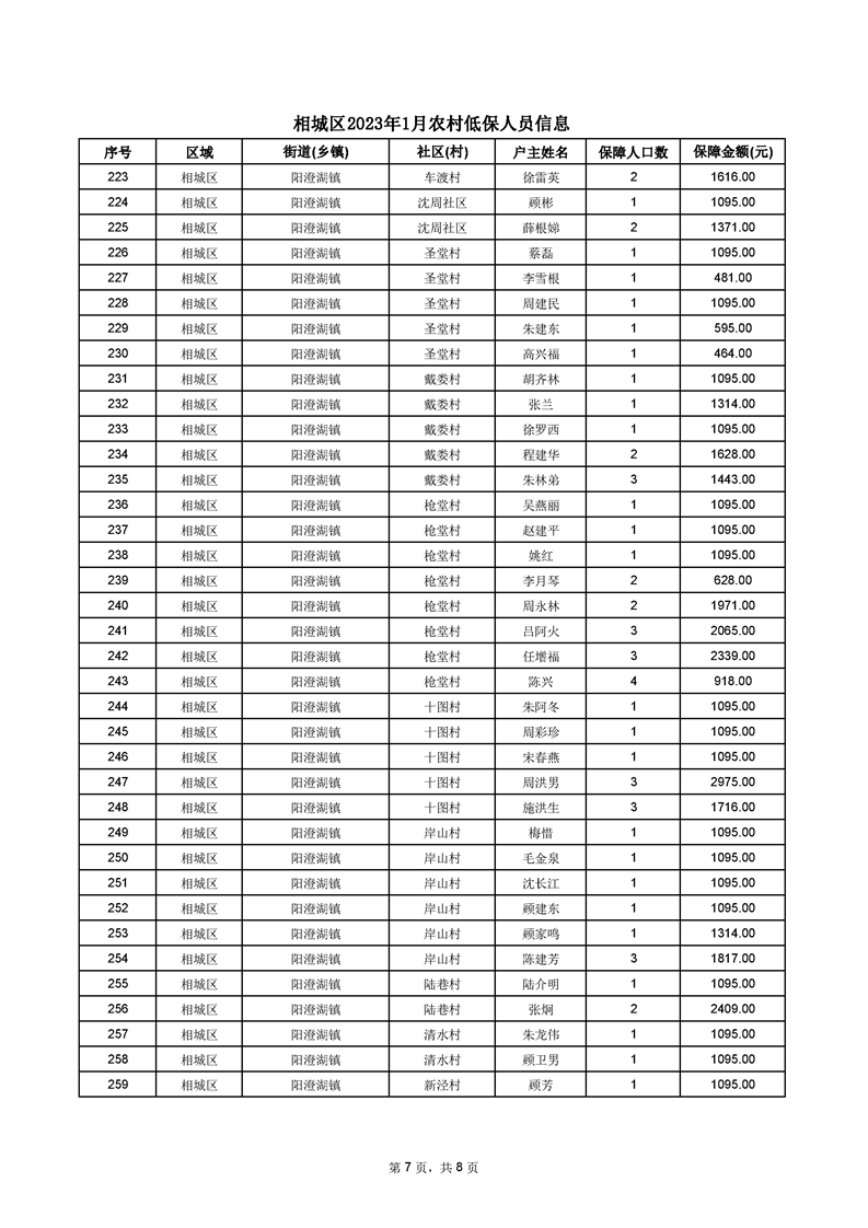 相城區(qū)2023年1月農(nóng)村低保人員信息