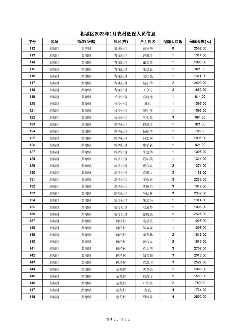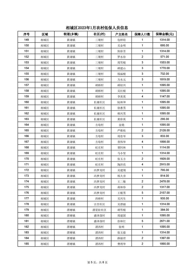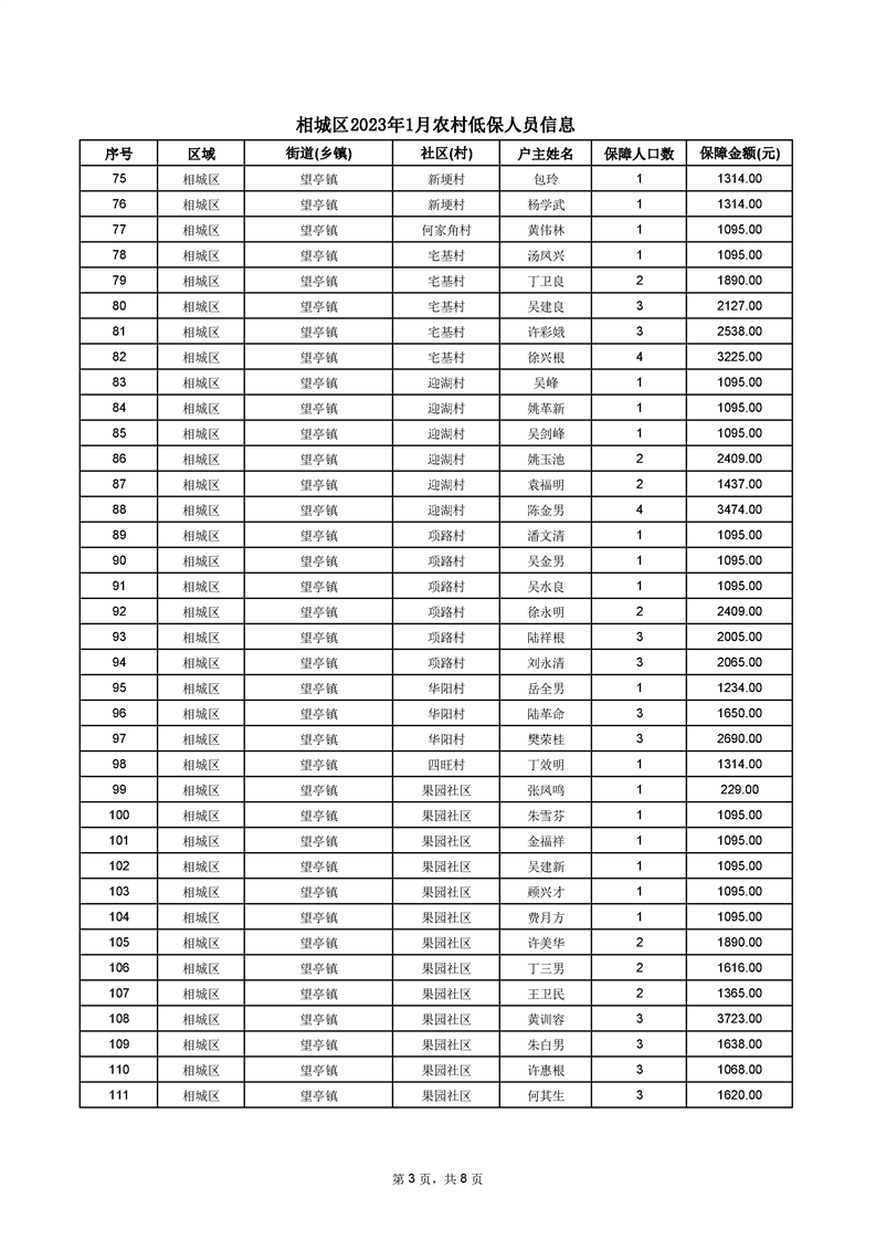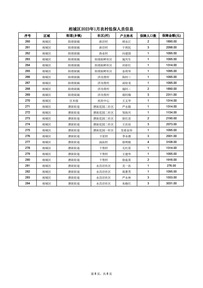 相城區(qū)2023年1月農(nóng)村低保人員信息