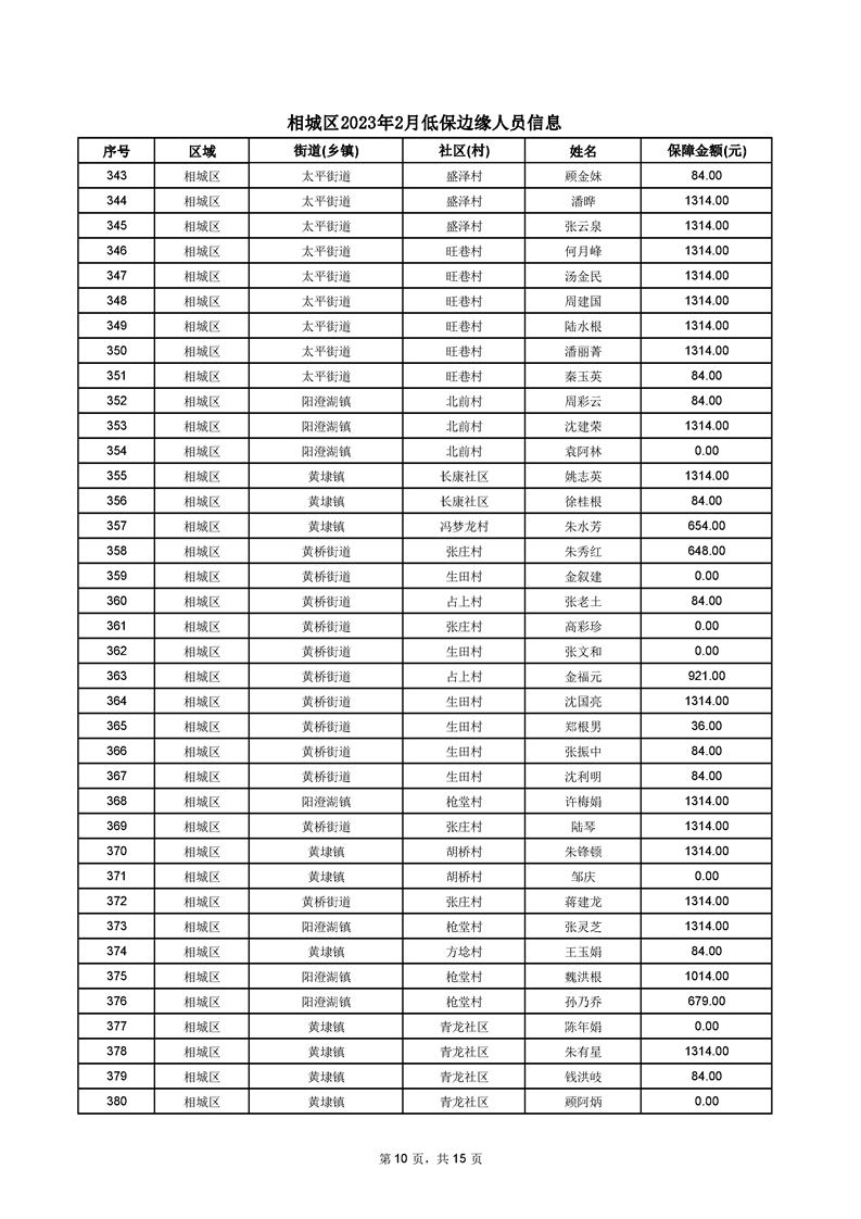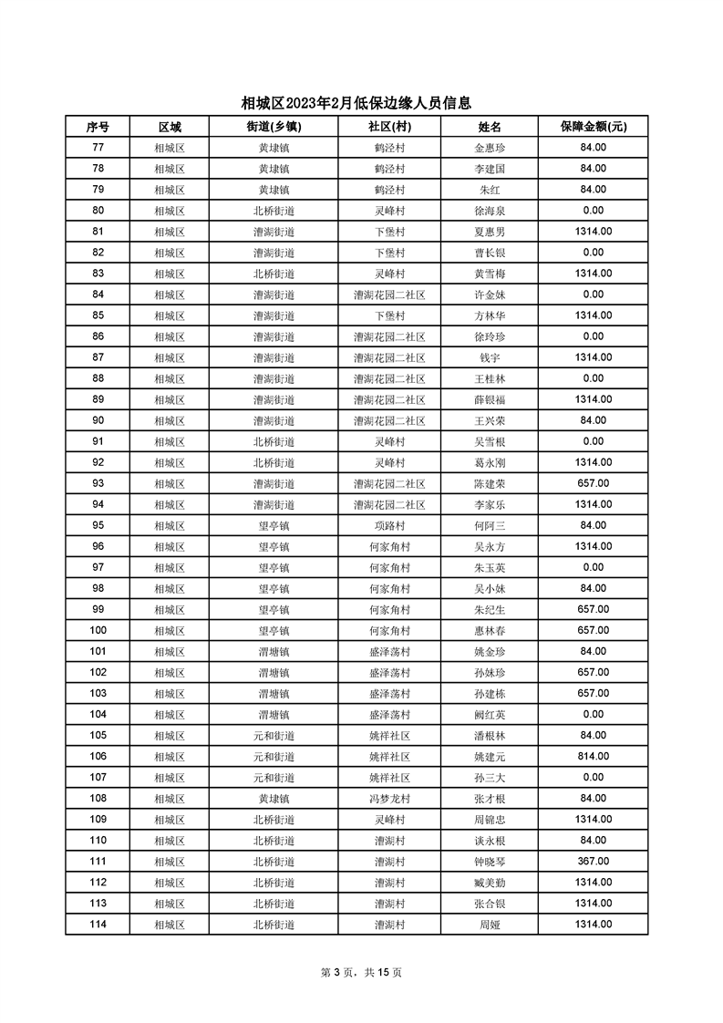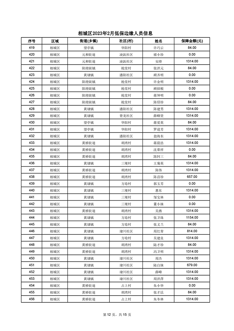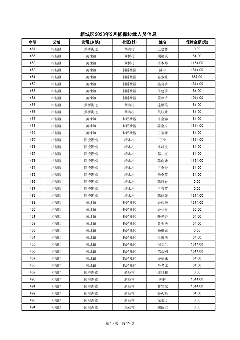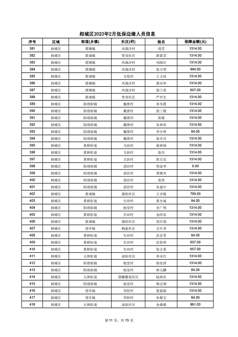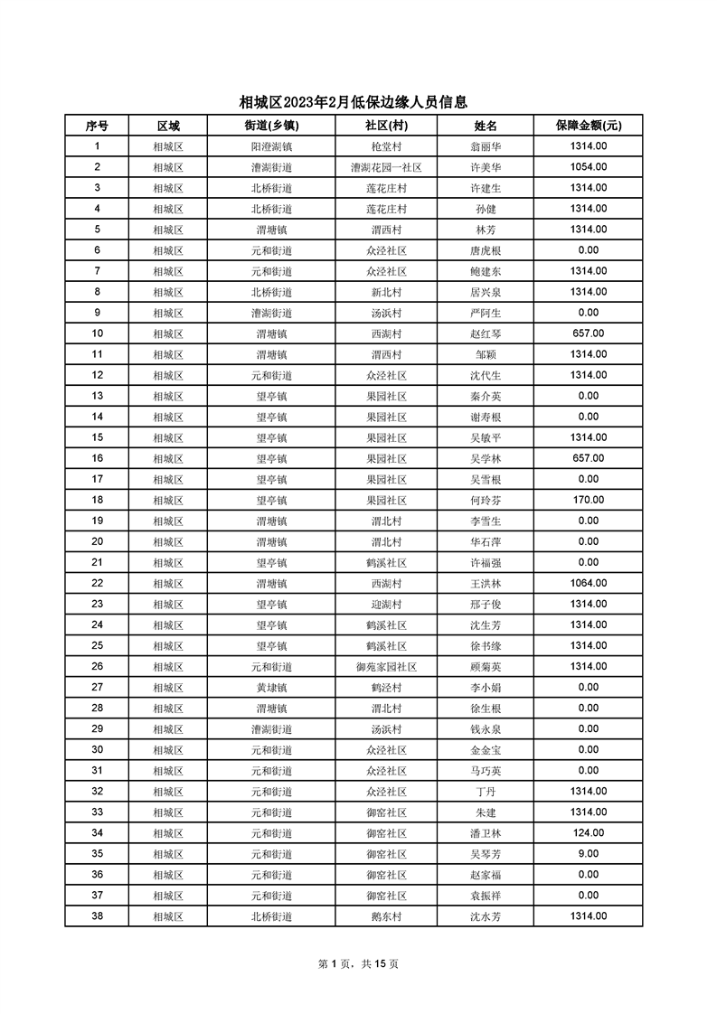 相城區(qū)2023年2月低保邊緣人員信息