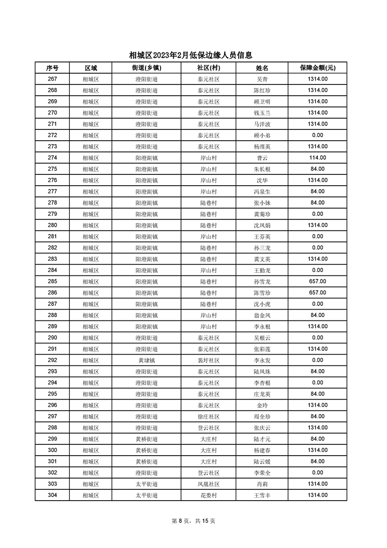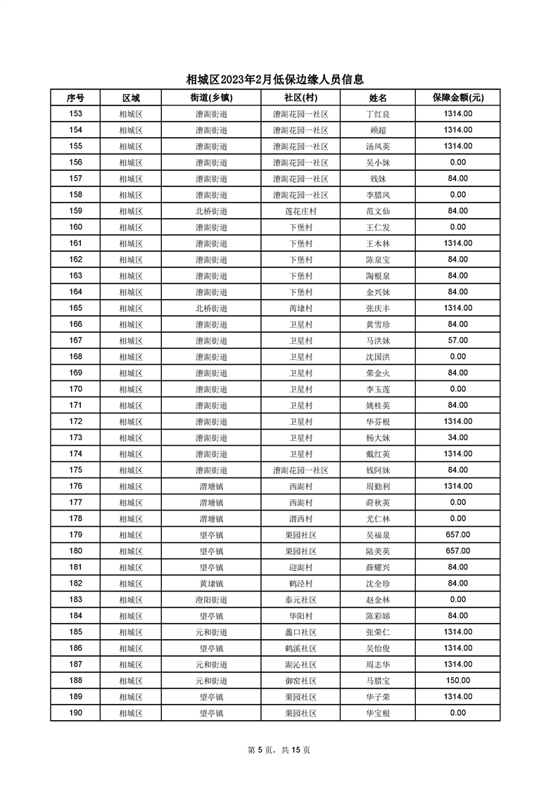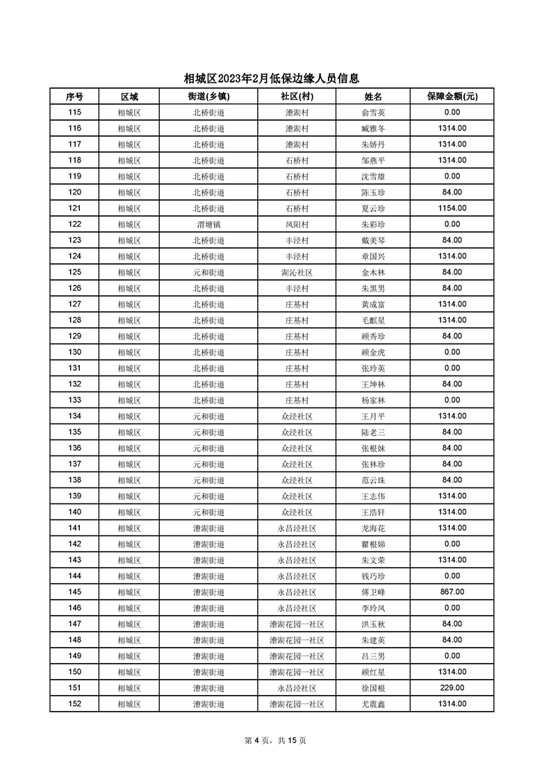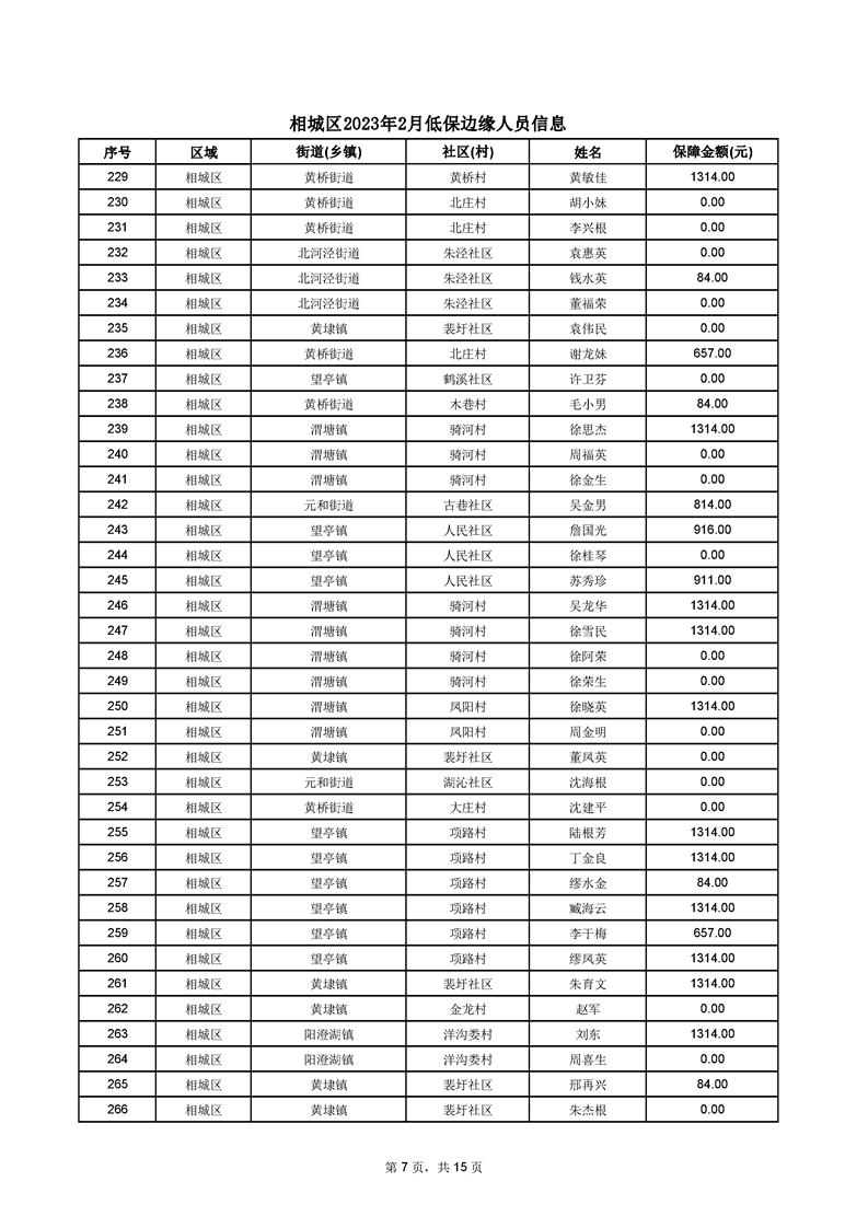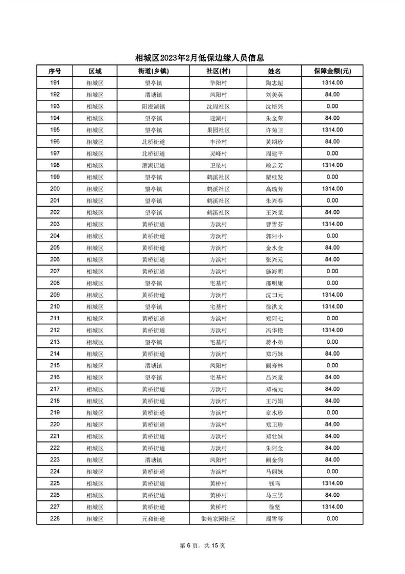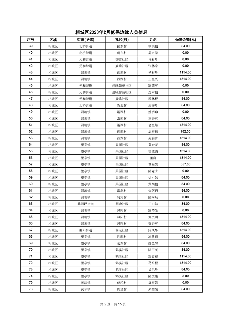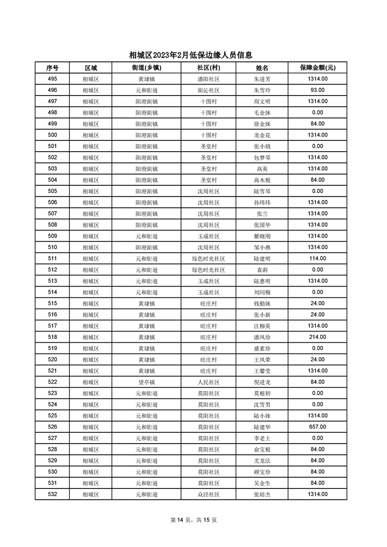 相城區(qū)2023年2月低保邊緣人員信息