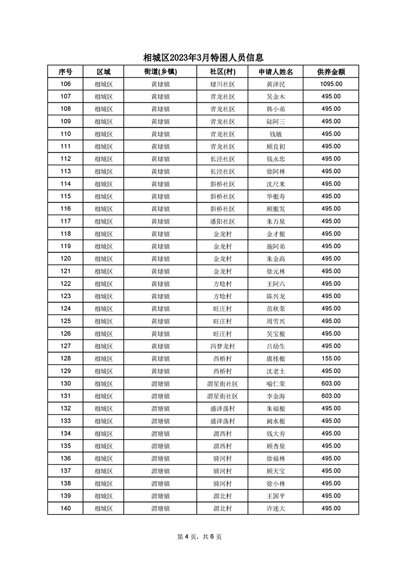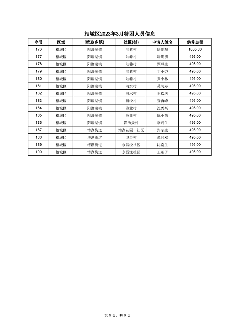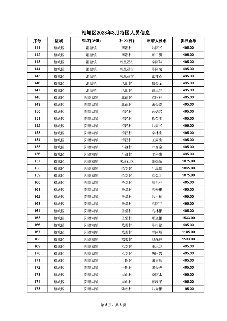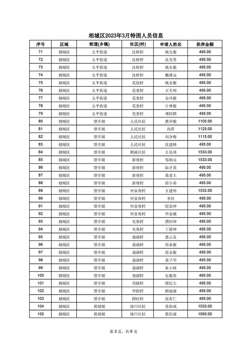 相城區(qū)2023年3月特困人員信息