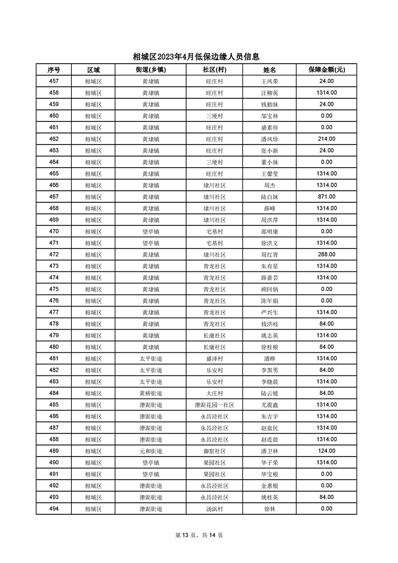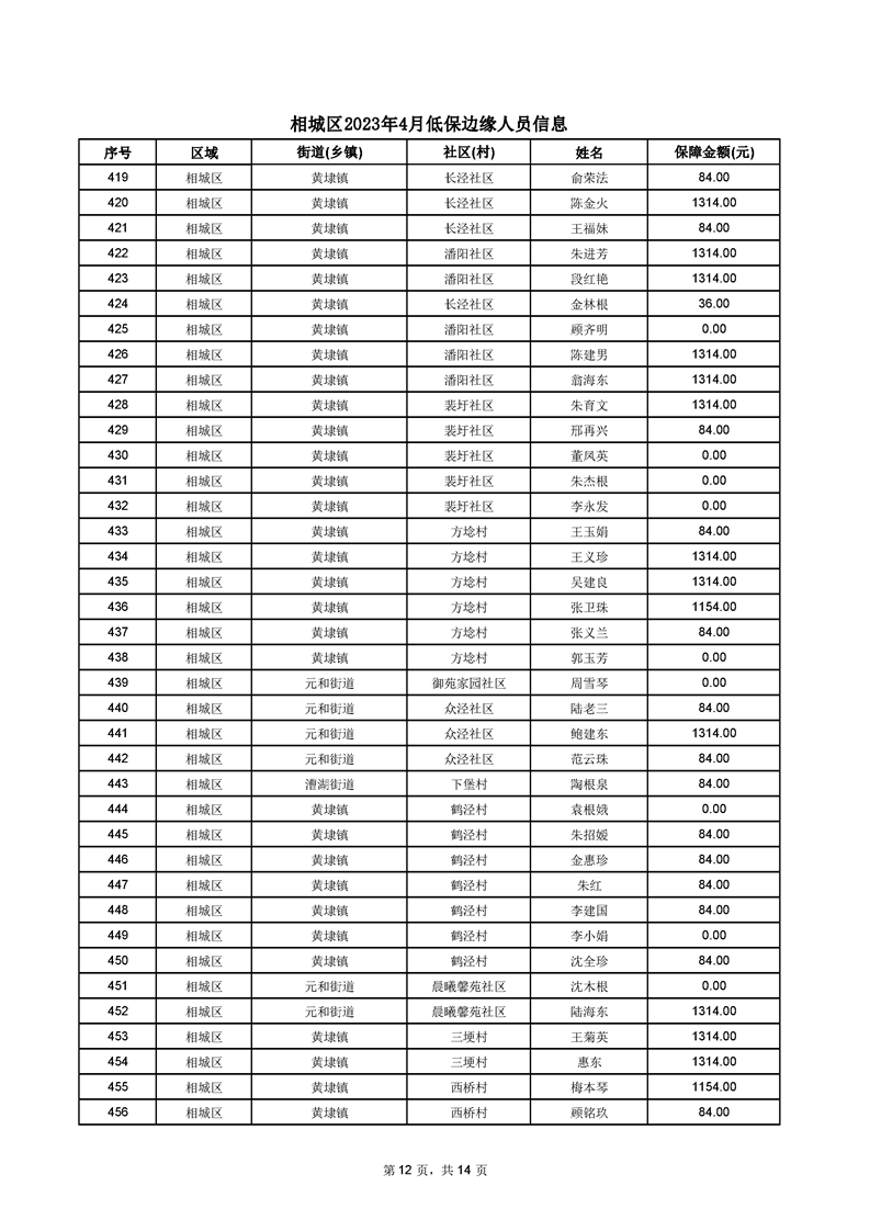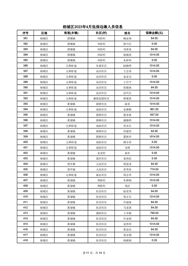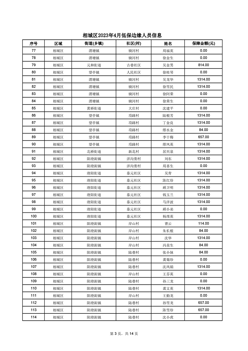 相城區(qū)2023年4月低保邊緣人員信息