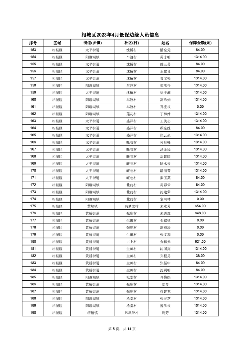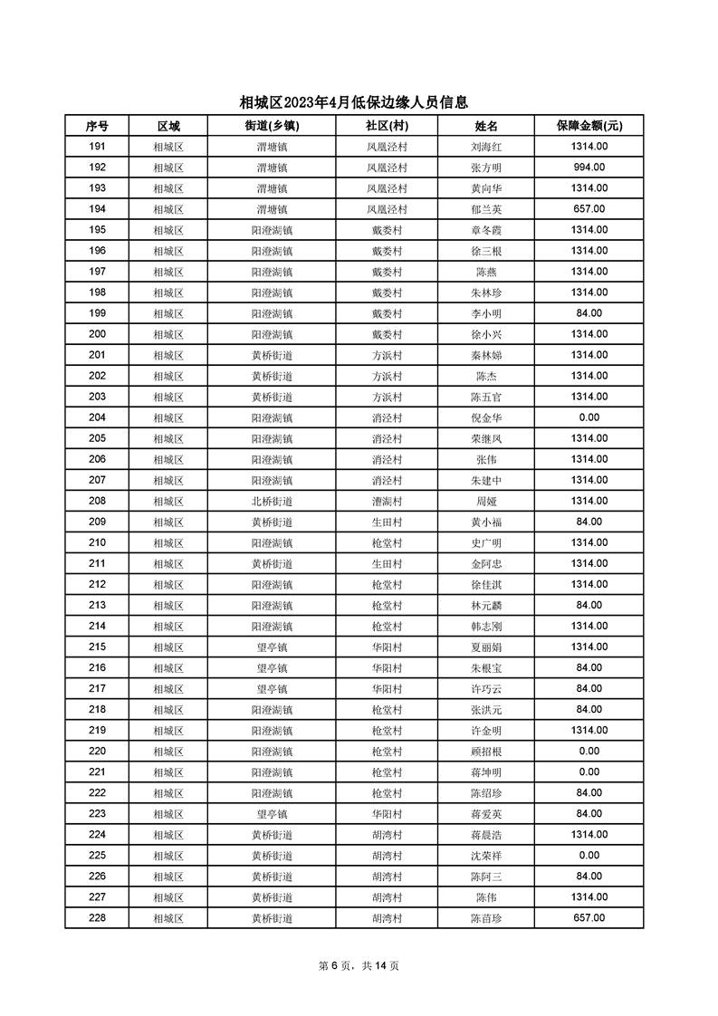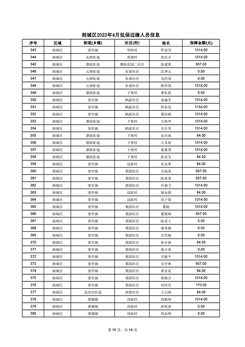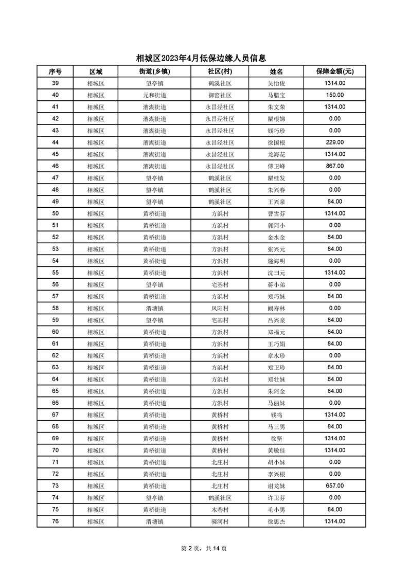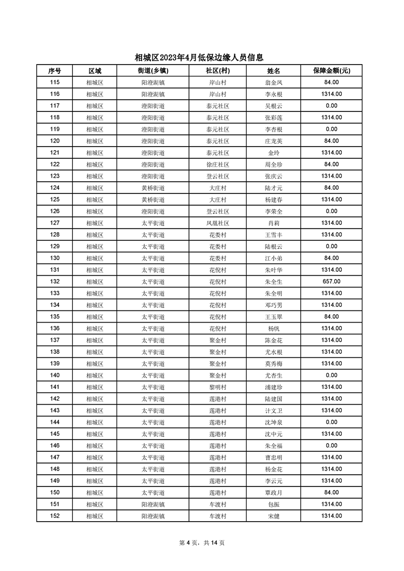 相城區(qū)2023年4月低保邊緣人員信息