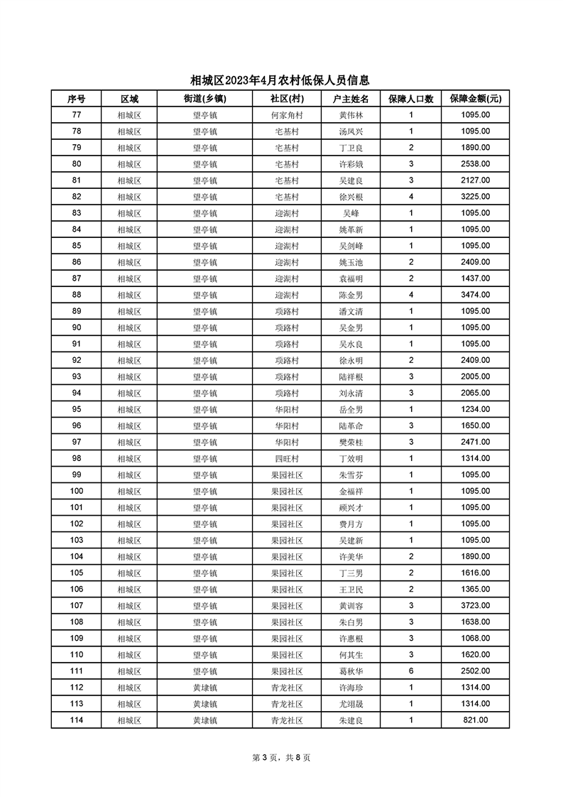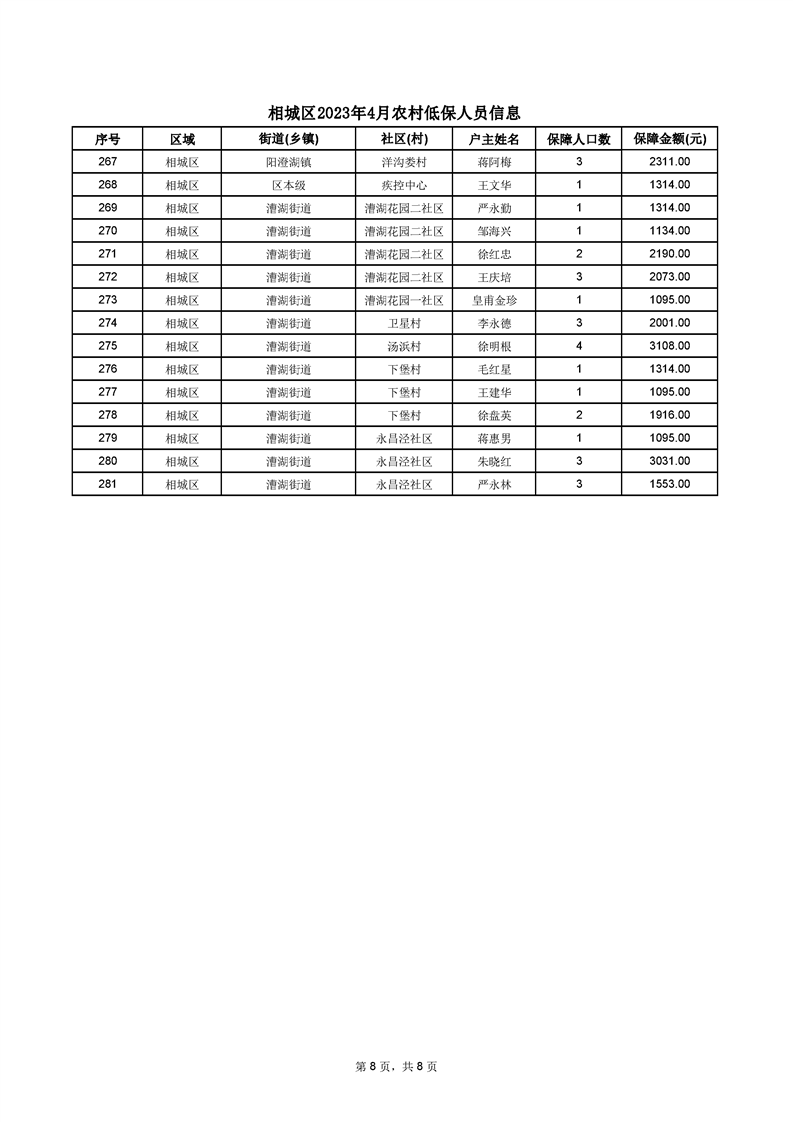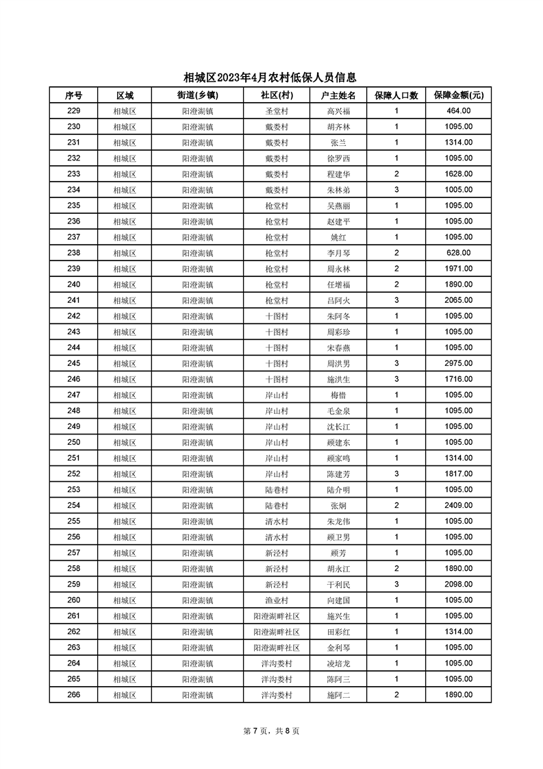 相城區(qū)2023年4月農(nóng)村低保人員信息