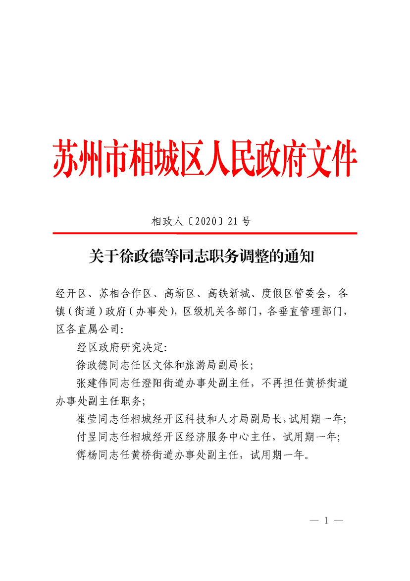 關(guān)于徐政德等同志職務(wù)調(diào)整的通知