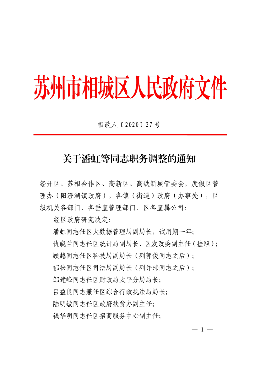 關(guān)于潘虹等同志職務(wù)調(diào)整的通知