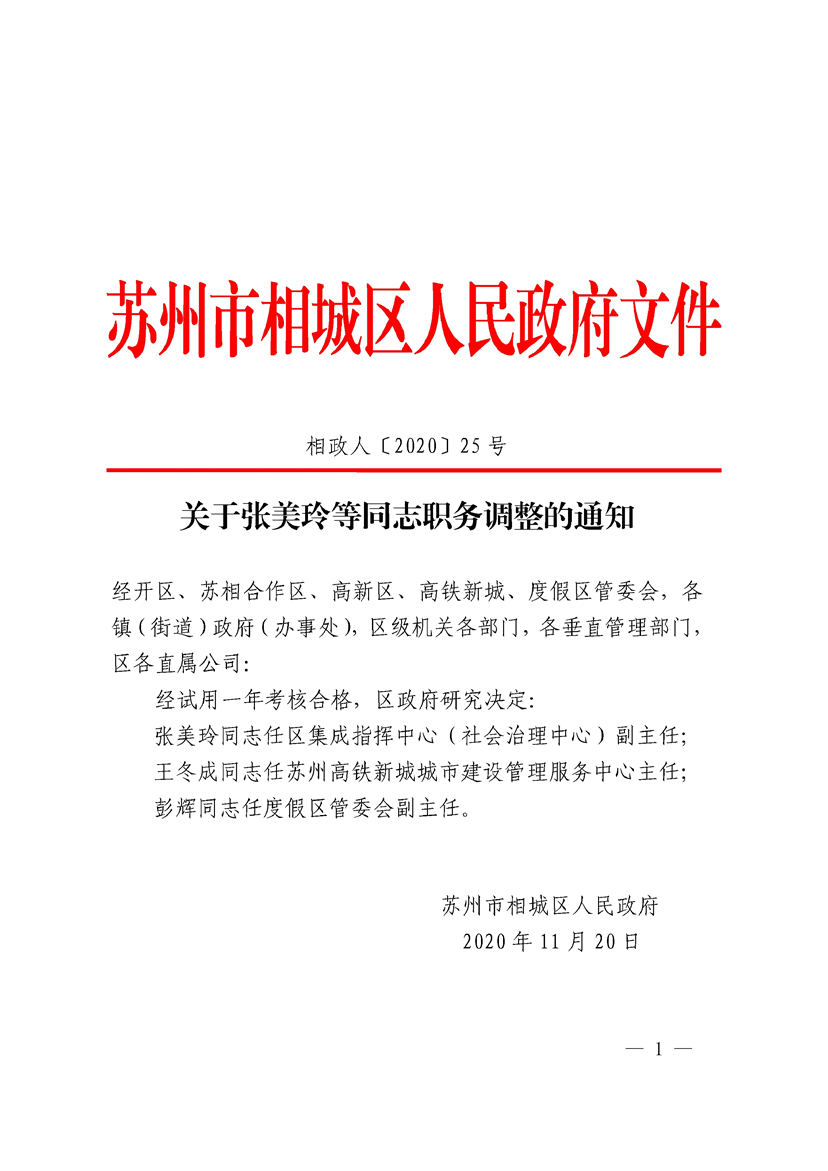 關(guān)于張美玲等同志職務(wù)調(diào)整的通知