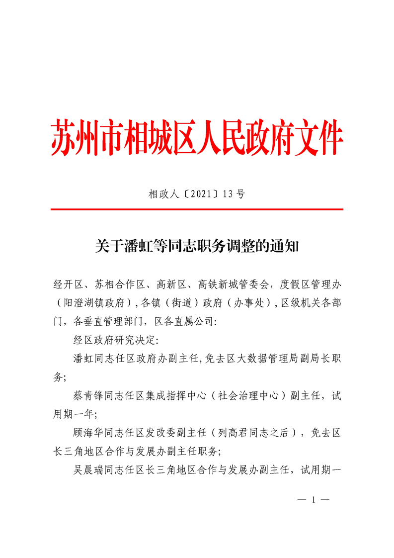 關(guān)于潘虹等同志職務(wù)調(diào)整的通知