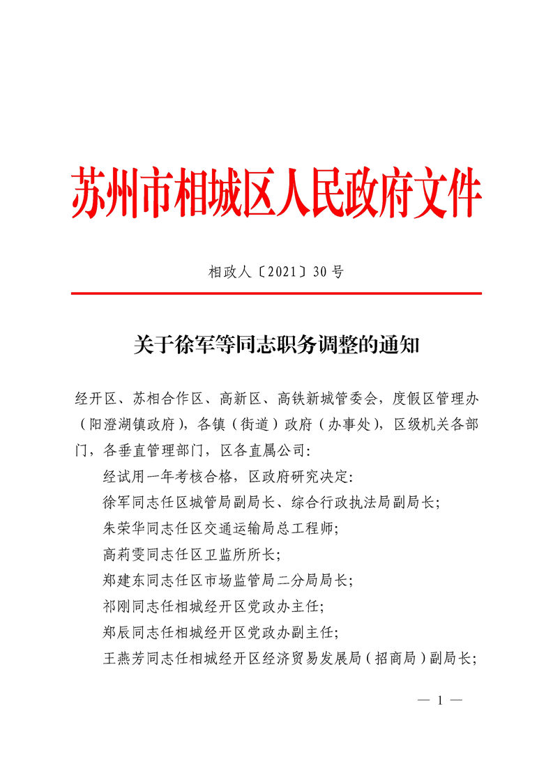 關(guān)于徐軍等同志職務(wù)調(diào)整的通知