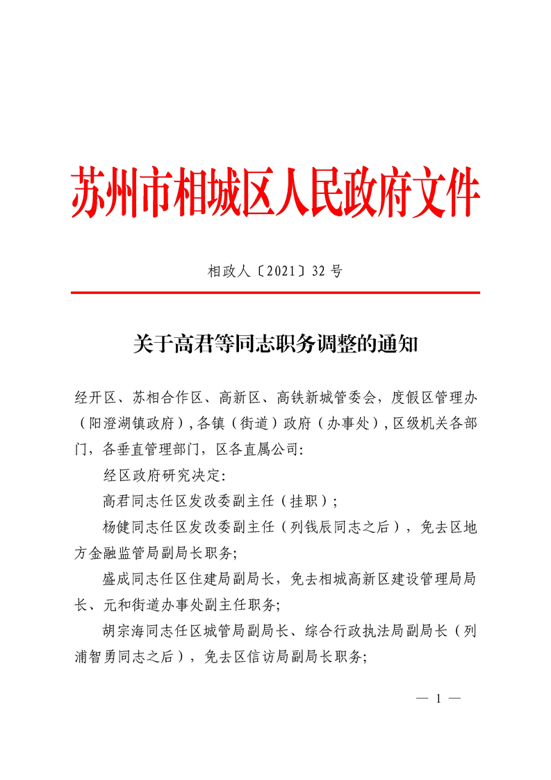關(guān)于高君等同志職務(wù)調(diào)整的通知