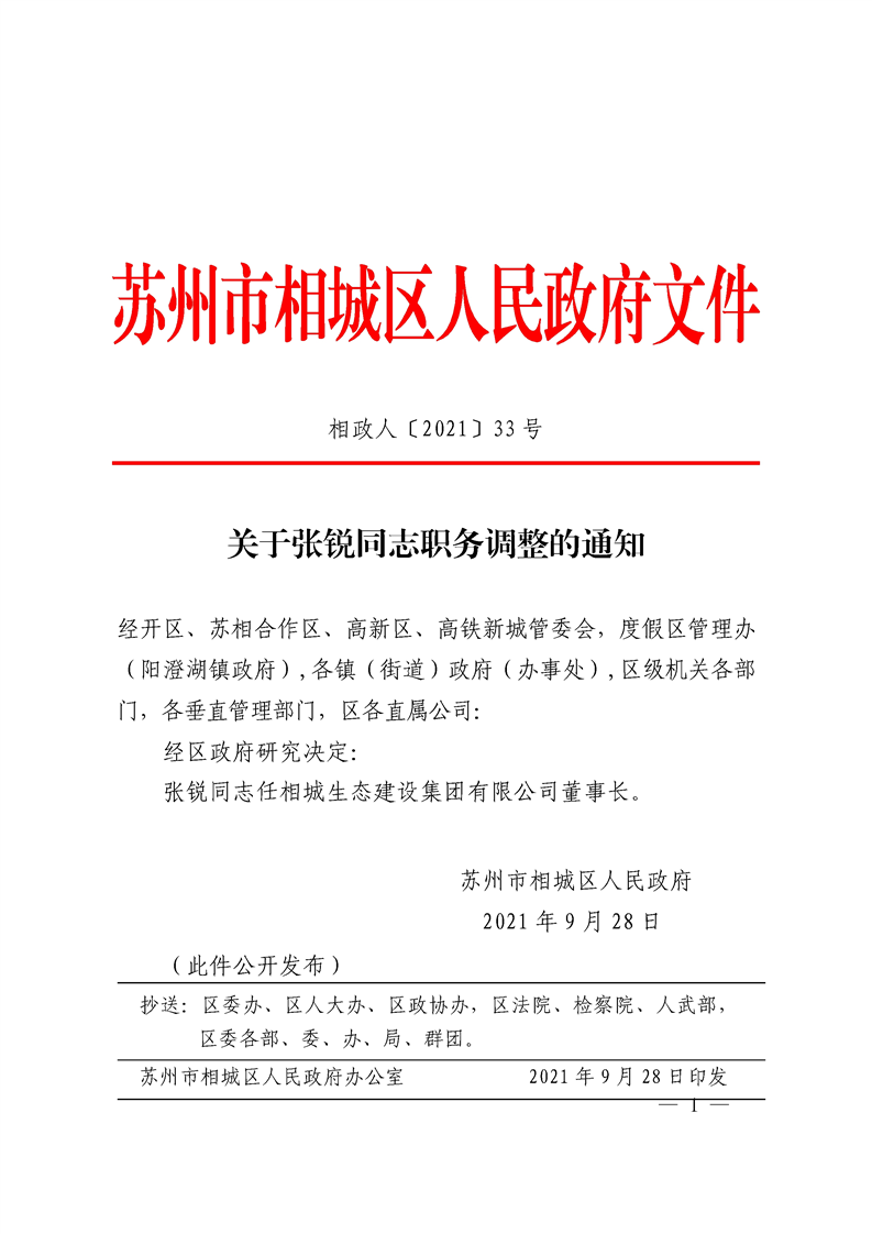 關(guān)于張銳同志職務(wù)調(diào)整的通知