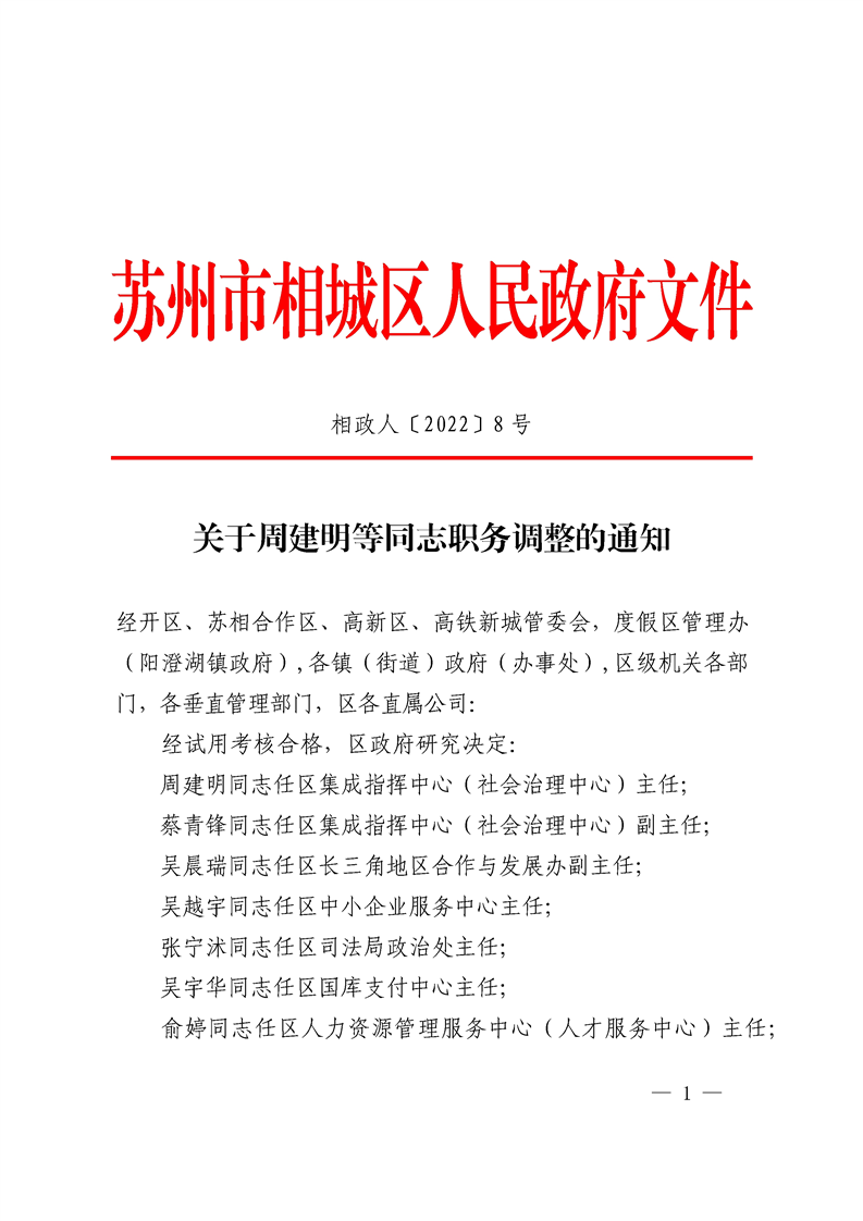 區(qū)政府關(guān)于周建明等同志職務(wù)調(diào)整的通知