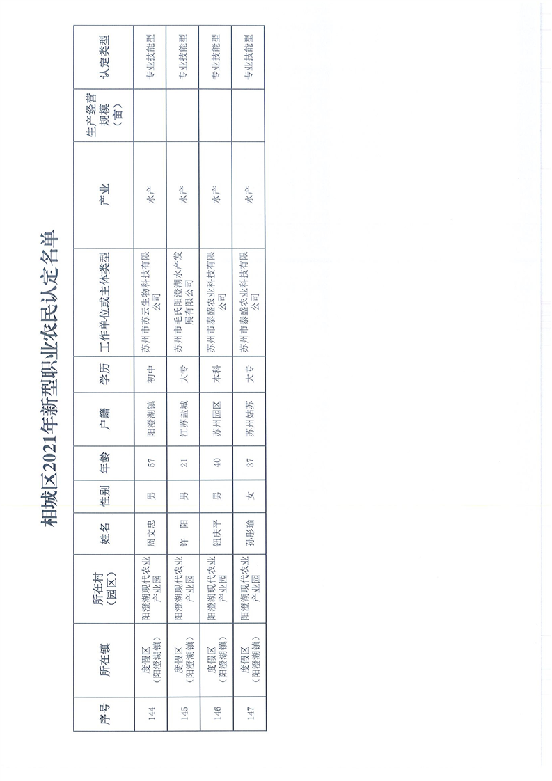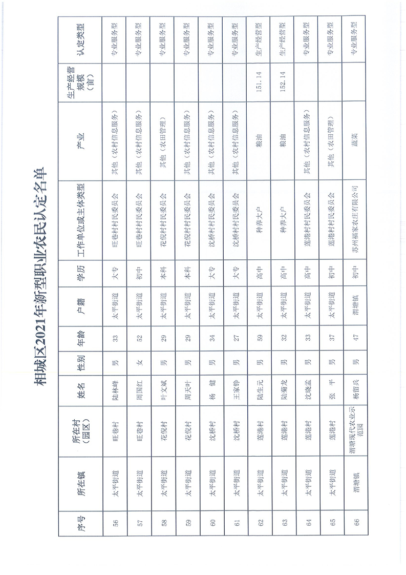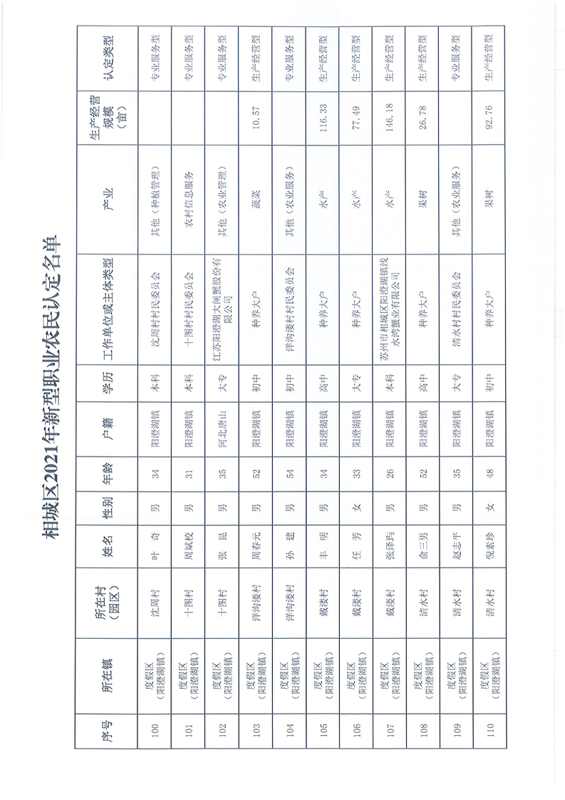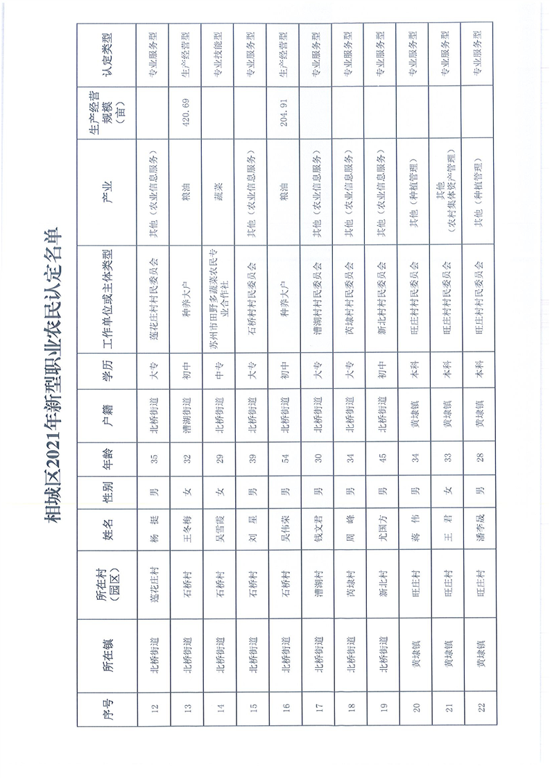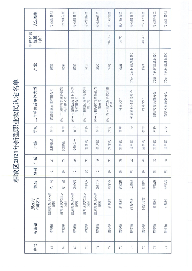 關(guān)于公布相城區(qū)2021年新型職業(yè)農(nóng)民認(rèn)定名單的通知