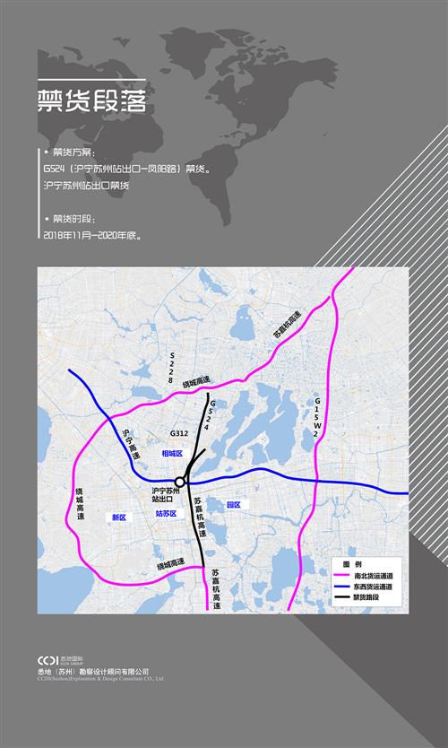 在當(dāng)天的通氣會上,蘇州市公安局交警支隊副支隊長劉軍宣讀了《關(guān)于對G524(S227)及滬寧高速蘇州站出口采取臨時交通管理措施的通告》。通告明確了管控措施,并針對過境貨運車輛給出繞行方案建議,具體為:2018年11月25日至2020年12月31日,G524(S227)(鳳陽路至滬寧蘇州站出口段)全天禁止貨運車輛通行。過境貨運車輛高速可以從S9、G15W2繞行;地面道路南北方向可以從S228-太東路-X303-S230繞行,東西方向可以從G312-X303-太東路-S22-8鳳陽路-X301-祖沖之路-G312繞行。因太陽路與S228、G524互通節(jié)點改造,建議過境車輛從高速繞行。相城區(qū)域內(nèi)貨運車輛按原規(guī)定執(zhí)行。2018年11月25日至2020年12月31日,滬寧蘇州站出口禁止貨運車輛通行。貨運車輛可以通過滬寧高速蘇州工業(yè)園區(qū)出口或滬寧高速蘇州新區(qū)出口通行。