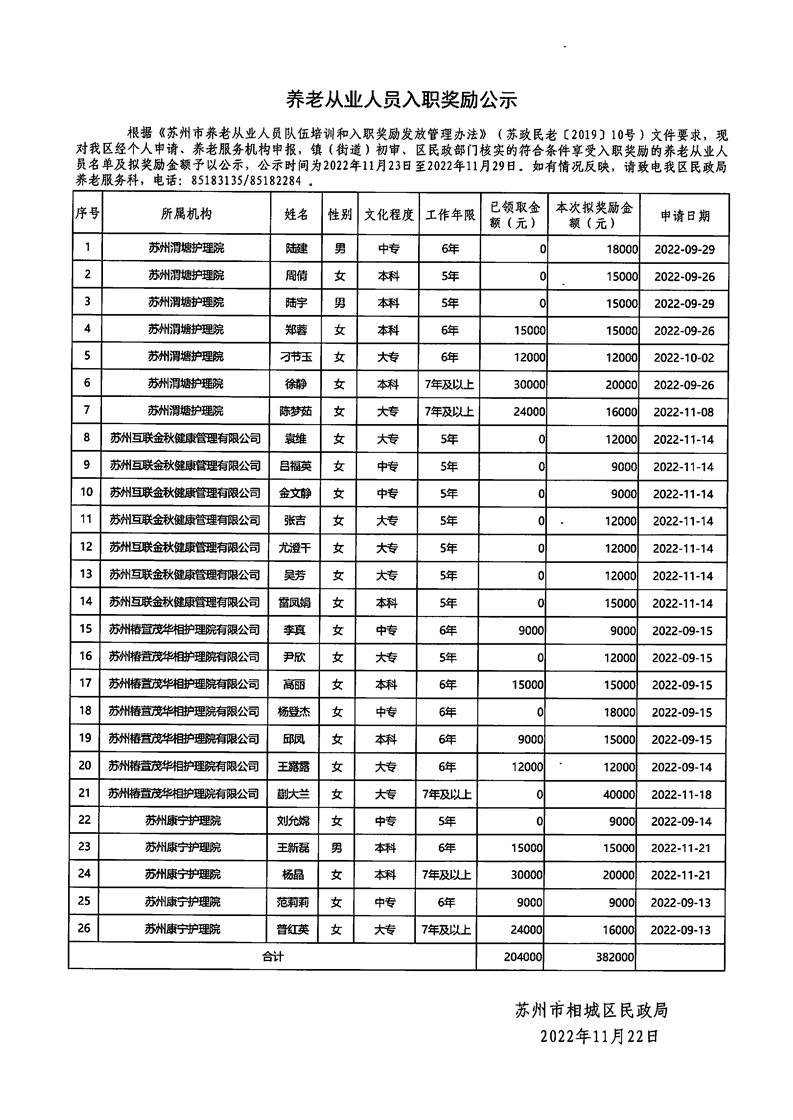 養(yǎng)老從業(yè)人員入職獎(jiǎng)勵(lì)公示