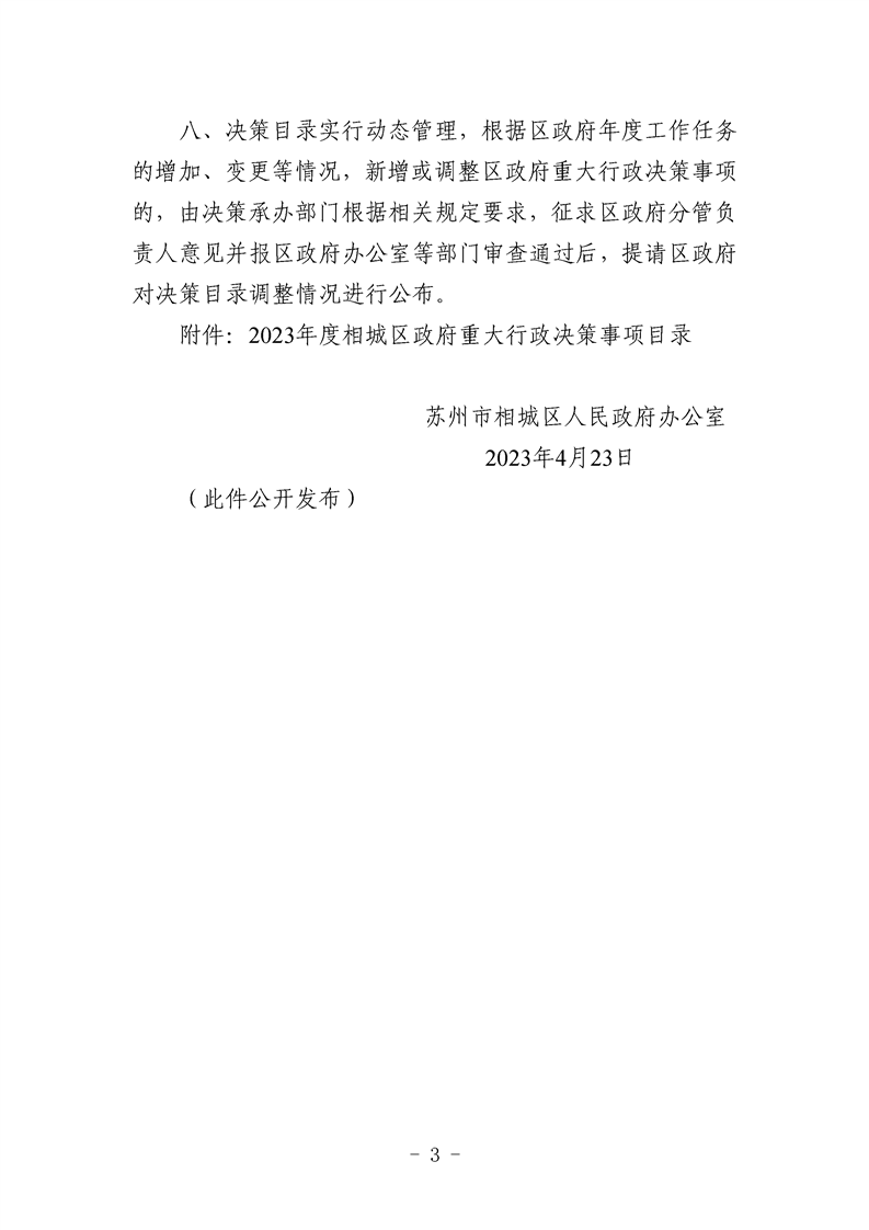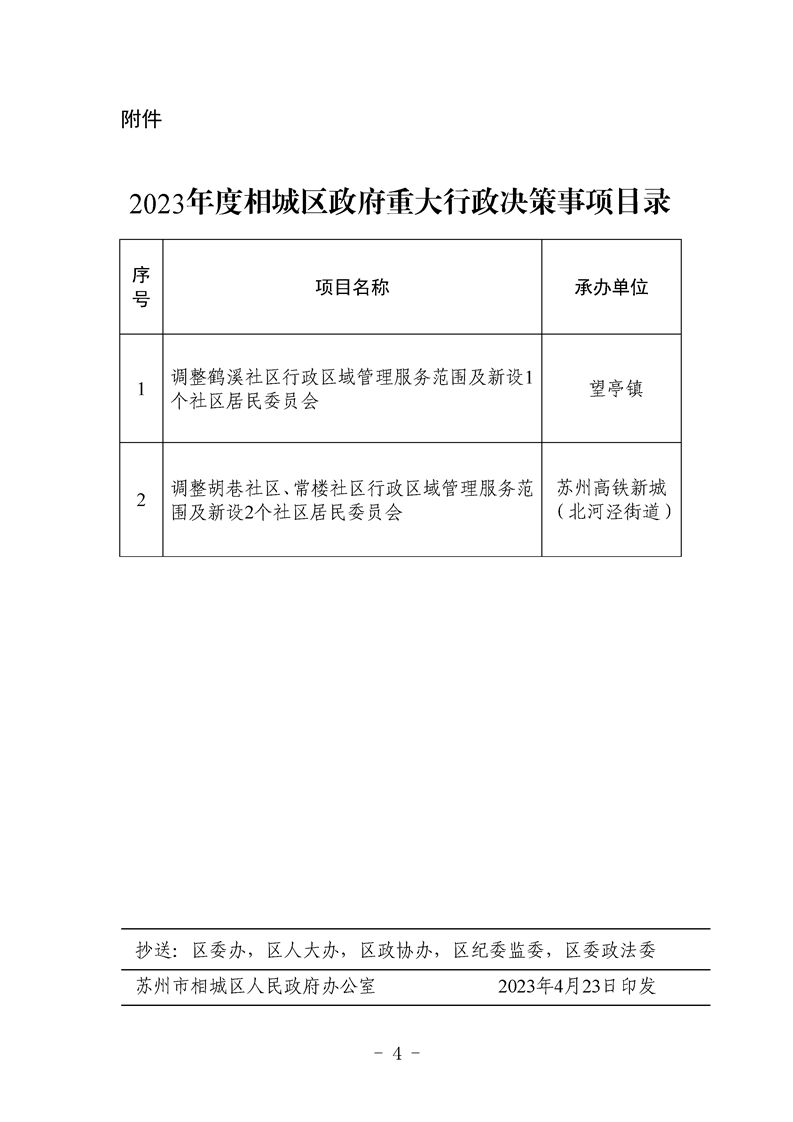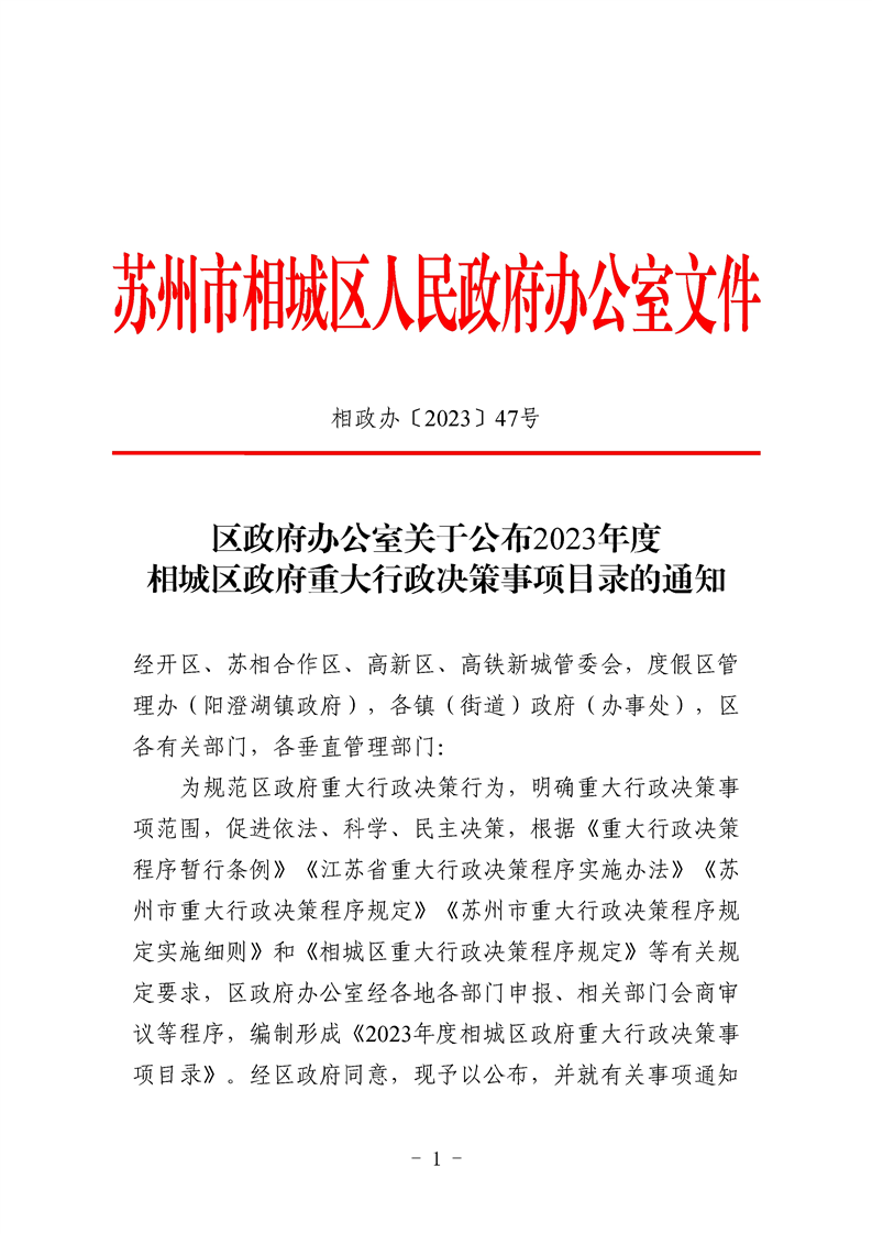 區(qū)政府辦公室關(guān)于公布2023年度相城區(qū)政府重大行政決策事項(xiàng)目錄的通知